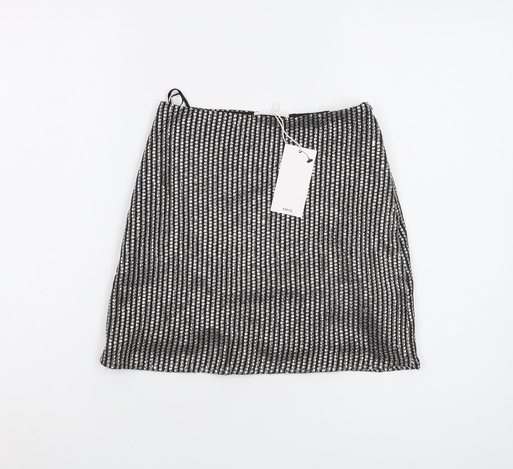 Elevate your wardrobe with this chic MNG Women's Black Pencil Skirt. Perfect for casual outings or more formal occasions, this short, straight-style skirt offers a sleek, slimming fit. Crafted from high-quality polyester with a stylish striped pattern, it combines comfort and elegance effortlessly. The mid-rise design flatters your silhouette, while the convenient zip closure ensures ease of wear. Ideal for any season, this versatile piece is both machine washable and brand new with tags. Add a touch of sophistication to your ensemble with this must-have skirt, perfect for any fashion-forward wardrobe.