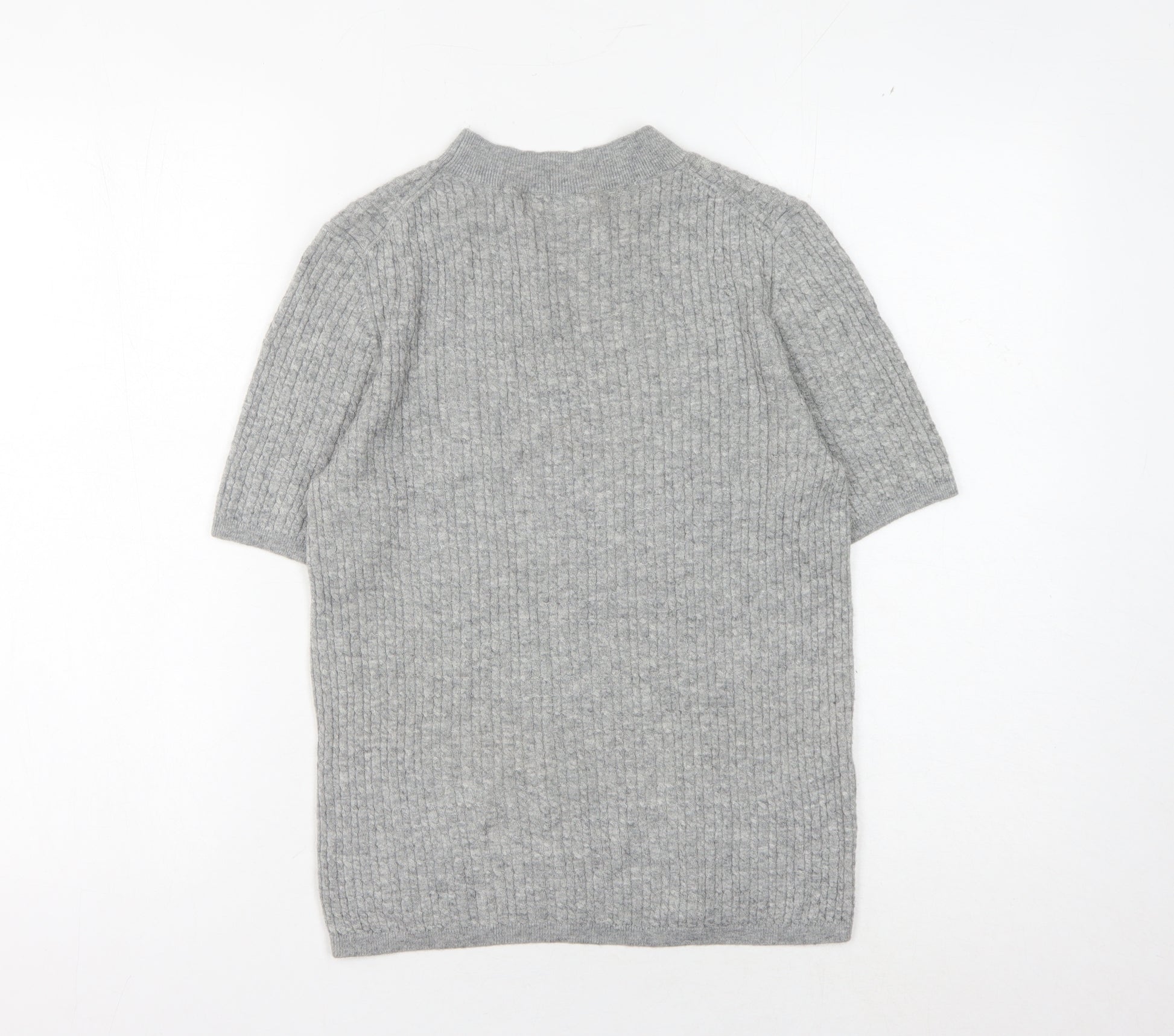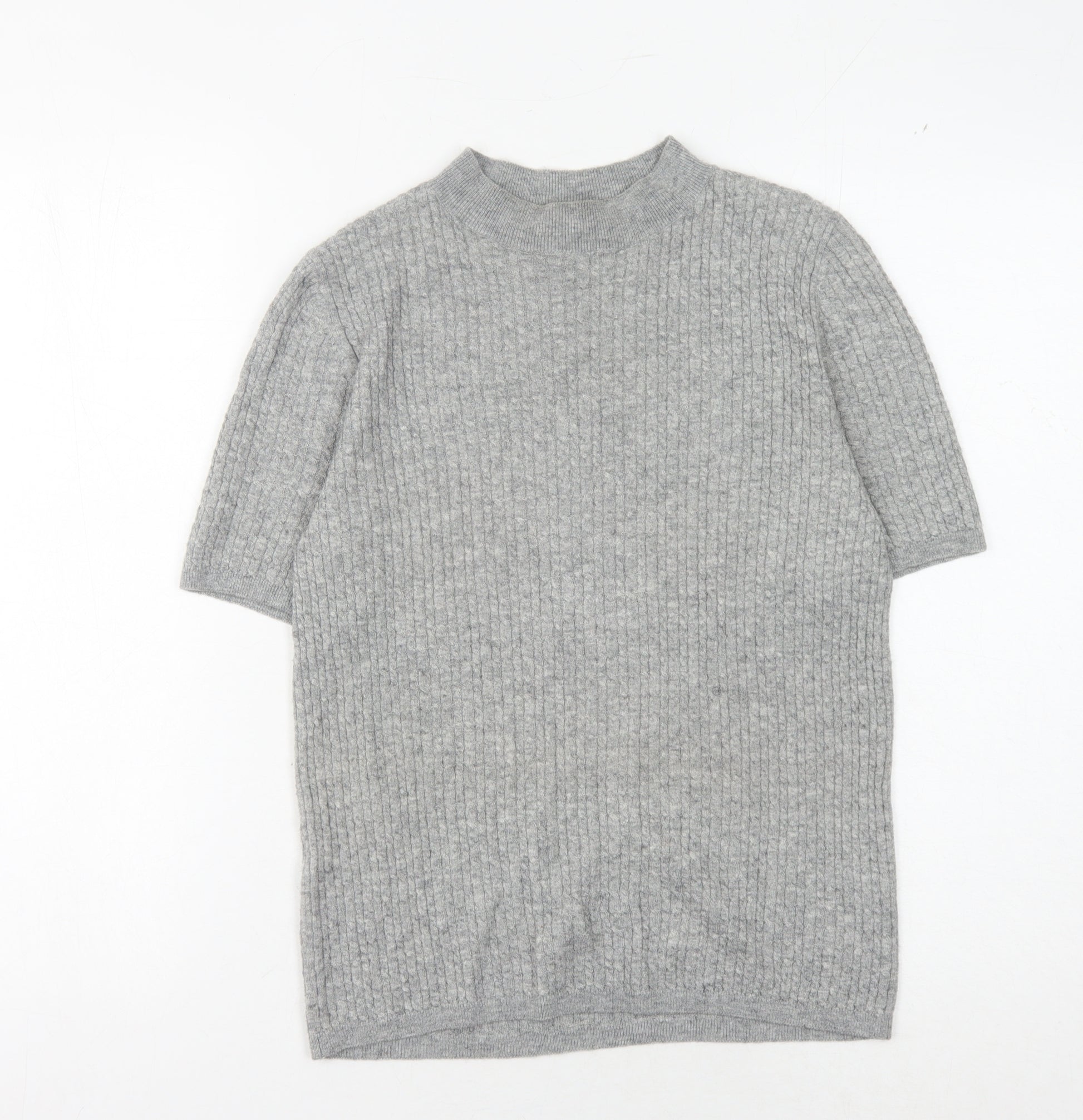Elevate your wardrobe with this elegant grey knit t-shirt from MNG, perfect for adding a touch of sophistication to your autumn and winter ensembles. Crafted from high-quality wool, this short sleeve top is designed to offer both warmth and style. The high neck design adds a chic element, making it suitable for both casual and more formal occasions. Ideal for women who appreciate classic fashion with a modern twist, the top's regular fit ensures comfort without compromising on style. Its solid grey colour provides a versatile foundation for pairing with a wide range of trousers, skirts, or jeans. Whether you're heading to the office or out for a weekend brunch, this piece will have you stepping out with confidence. Don't miss the chance to own this stylish, gently used piece in excellent condition – a must-have staple that you'll wear time and again. Grab it now for an unbeatable price!