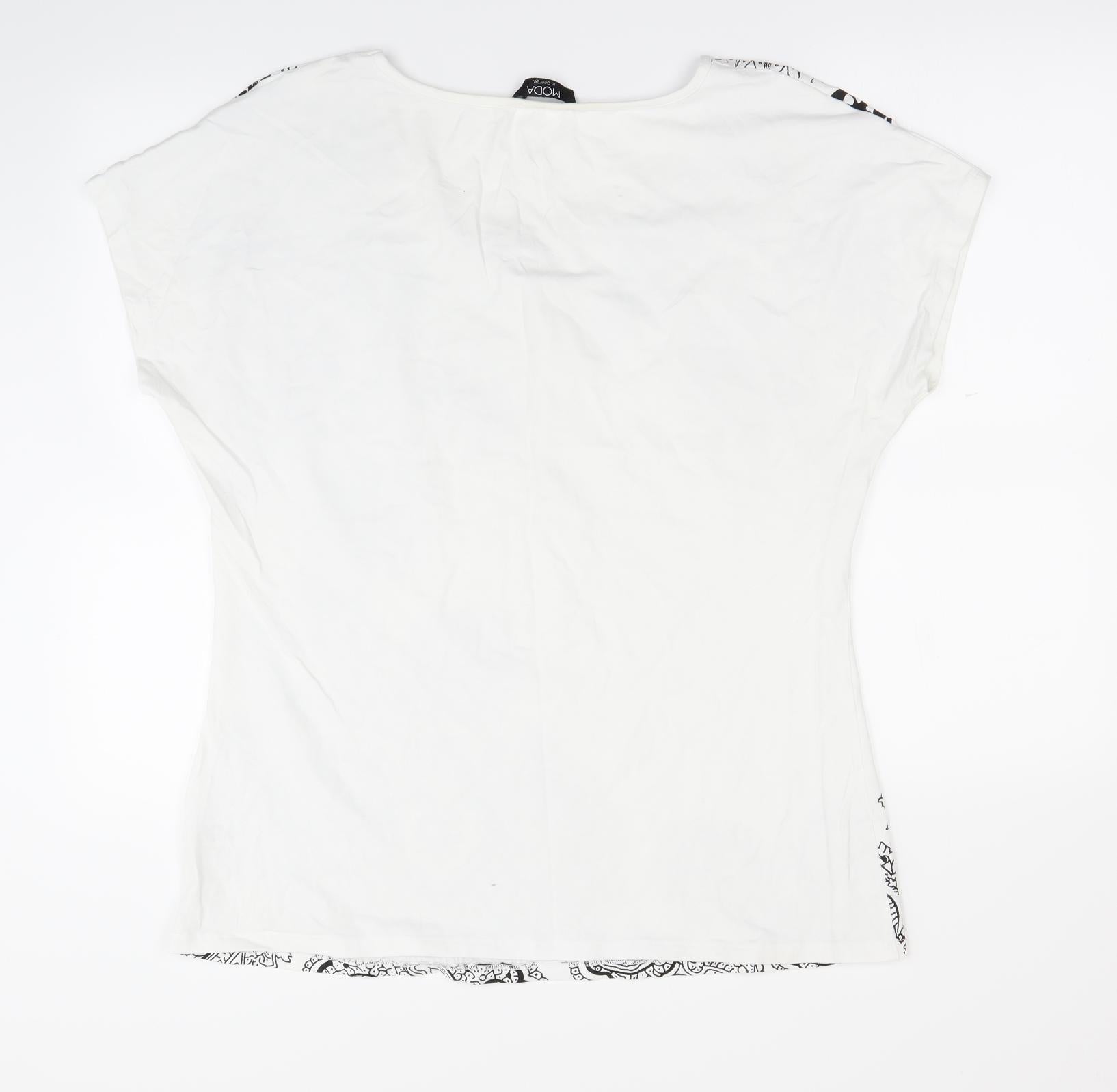 Cotton Traders Womens White Zebra Print Cotton 3/4 Sleeve T-Shirt Size 18