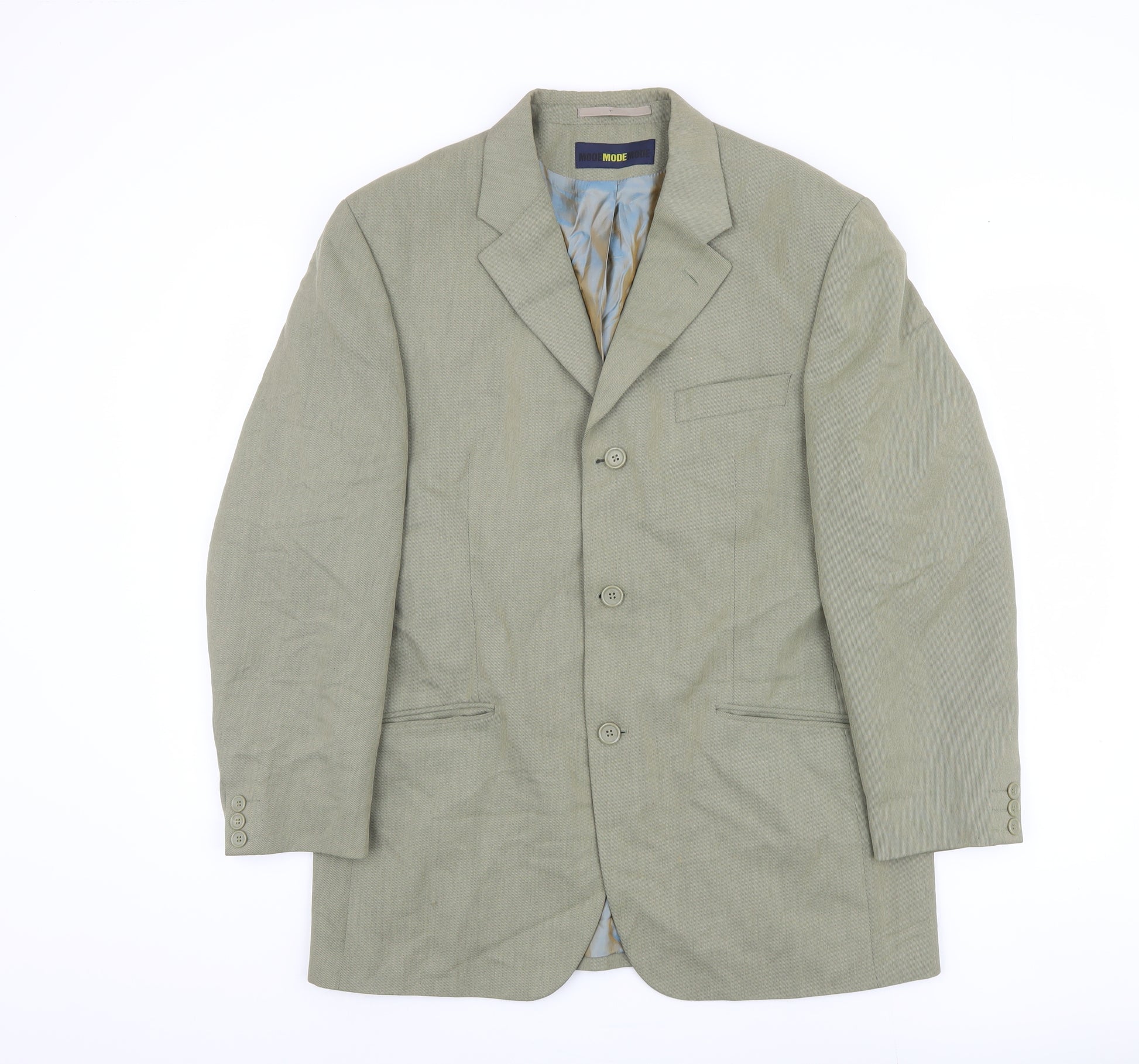 Elevate your wardrobe with this sophisticated MODE Men's Blazer, designed in a refreshing green hue, perfect for both casual and formal occasions. Crafted with a blend of 54% Viscose and 46% Polyester, this single-breasted jacket provides a comfortable, lightweight feel ideal for spring and summer. The jacket features a classic notch lapel style with a sleek two-button front closure and four-button sleeves, accentuating its modern aesthetic. With a regular fit and 40S size, this jacket ensures a tailored look without compromising on comfort.The double-vented style at the back contributes to its charming silhouette, while the professional acetate and viscose lining add an element of luxury. Despite lacking original brand sales tags, the blazer is in excellent condition, showcasing no visible signs of wear. Its stylish design makes it suitable for various events, whether for business meetings, evening dinners, or simply enhancing everyday outfits.The jacket requires dry cleaning only, maintaining its durability and pristine appearance. Priced reasonably, it's an attractive choice for men seeking a versatile wardrobe staple that resonates with class and style. Make a statement this season with this chic MODE blazer, striking a perfect balance between timelessness and contemporary fashion.
