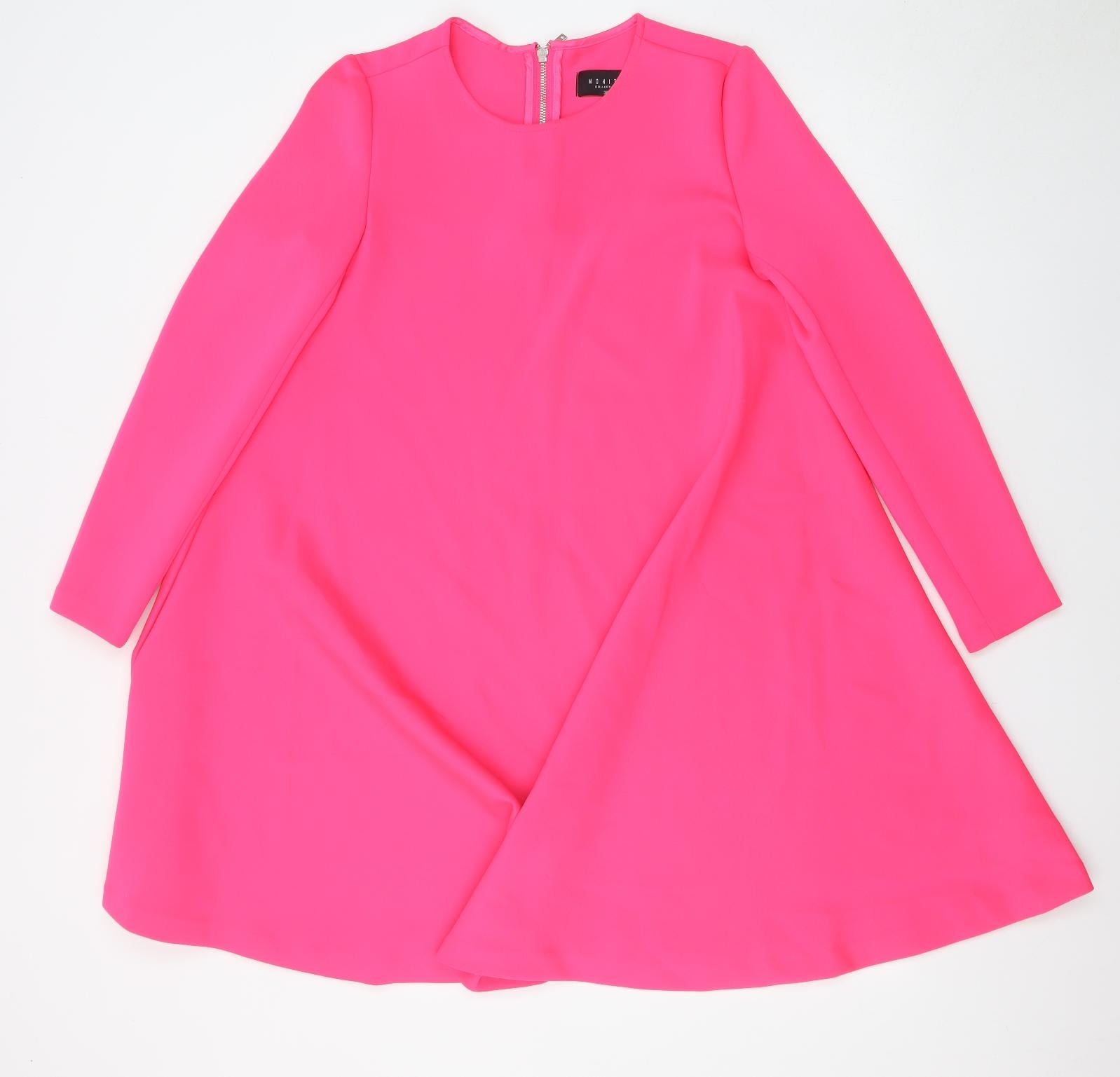 Womens Pink Polyester A-Line Size 10 Round Neck Zip