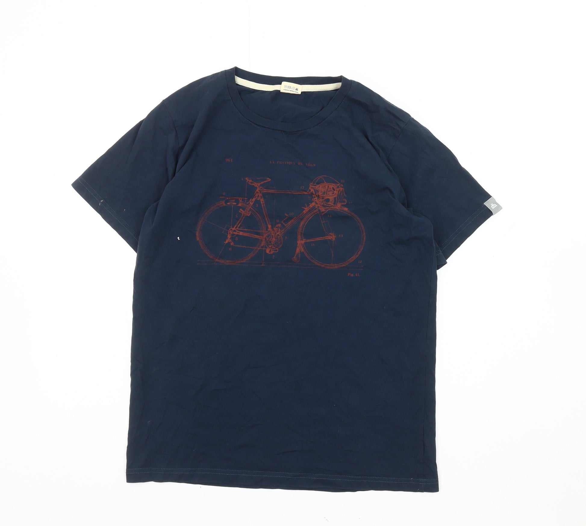 Men's Blue Graphic Bicycle T-Shirt, S, Crew Neck