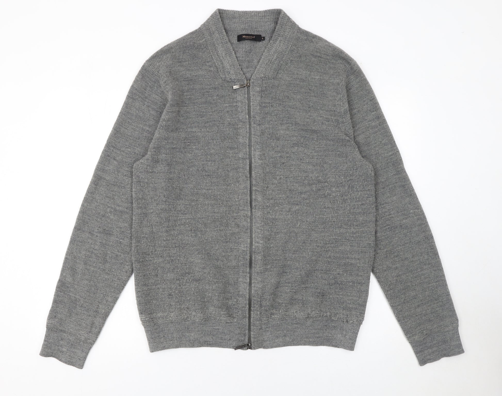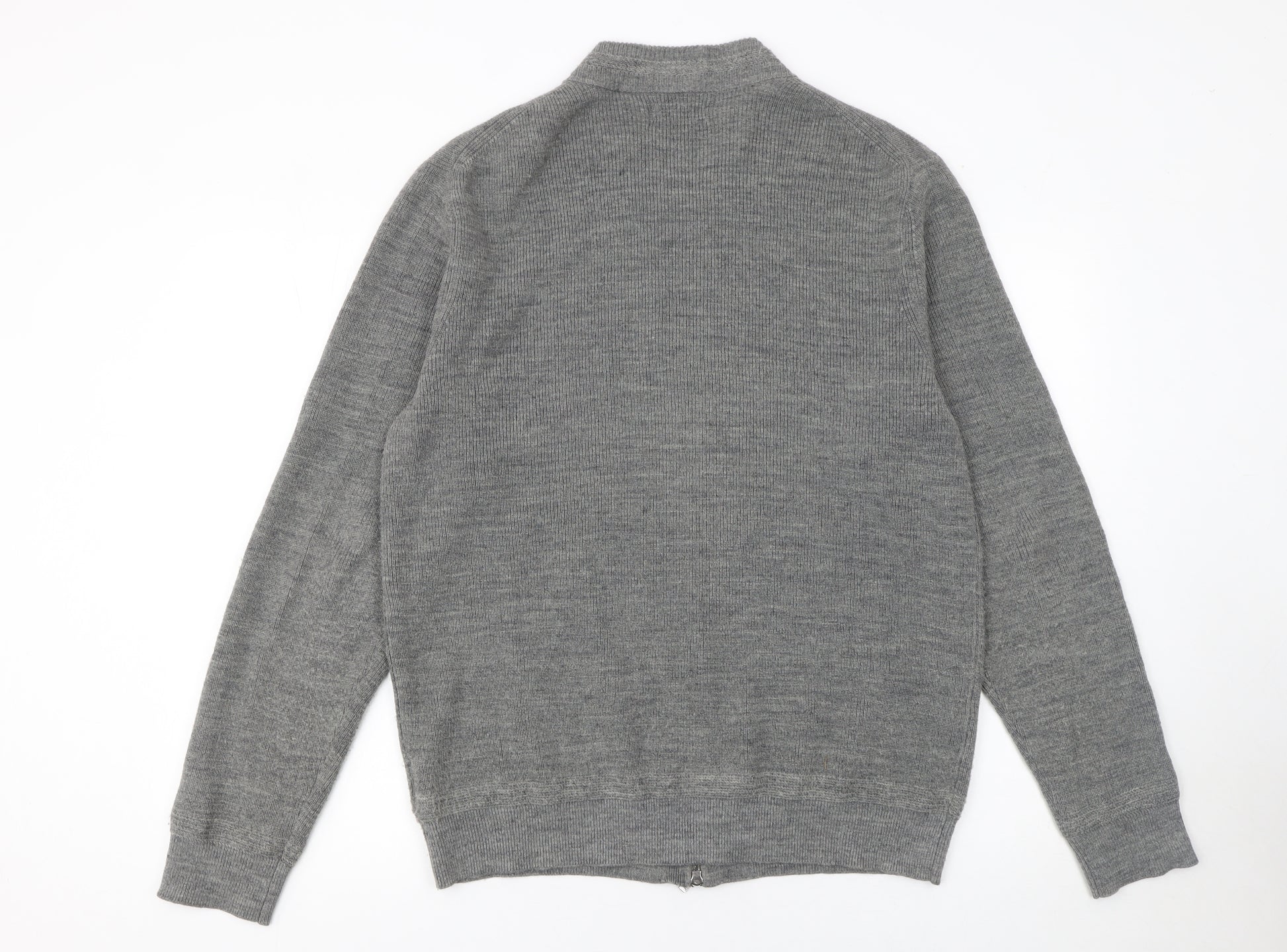 This Moncrief London women’s full zip jumper offers classic British elegance with a focus on warmth and refined comfort. Crafted from a 50% wool and 50% acrylic blend, this knit provides softness and natural insulation combined with durability for long-lasting wear. The sophisticated grey hue ensures versatile styling, making it easy to pair with both formal and casual outfits. Designed in a regular fit, this jumper maintains a flattering silhouette that complements various body shapes while allowing ease of movement. Its tight-knit construction and ribbed cuffs add structure and retain shape through regular use. The discreet full metal zip fastening makes it convenient yet smart, lending the piece a light cardigan look suitable for layering over shirts or tops. The V-neck collar and minimal detailing provide a timeless aesthetic that fits seamlessly into any wardrobe. Perfect for autumn and winter seasons, its cosy yet breathable composition keeps you comfortably warm on cool days without feeling heavy. Ideal for casual occasions or workwear layering, it embodies understated sophistication. Whether styled with jeans for relaxed weekends or trousers for office-ready elegance, this jumper transitions effortlessly between settings. With quality craftsmanship and a classic design ethos, Moncrief ensures both style and function in every thread. This garment has been carefully inspected and remains in excellent pre-owned condition with no visible marks or damage. Add a touch of everyday luxury to your wardrobe with this beautifully made Moncrief grey wool-blend full zip jumper – a premium layering essential designed for modern women who appreciate both comfort and timeless fashion.