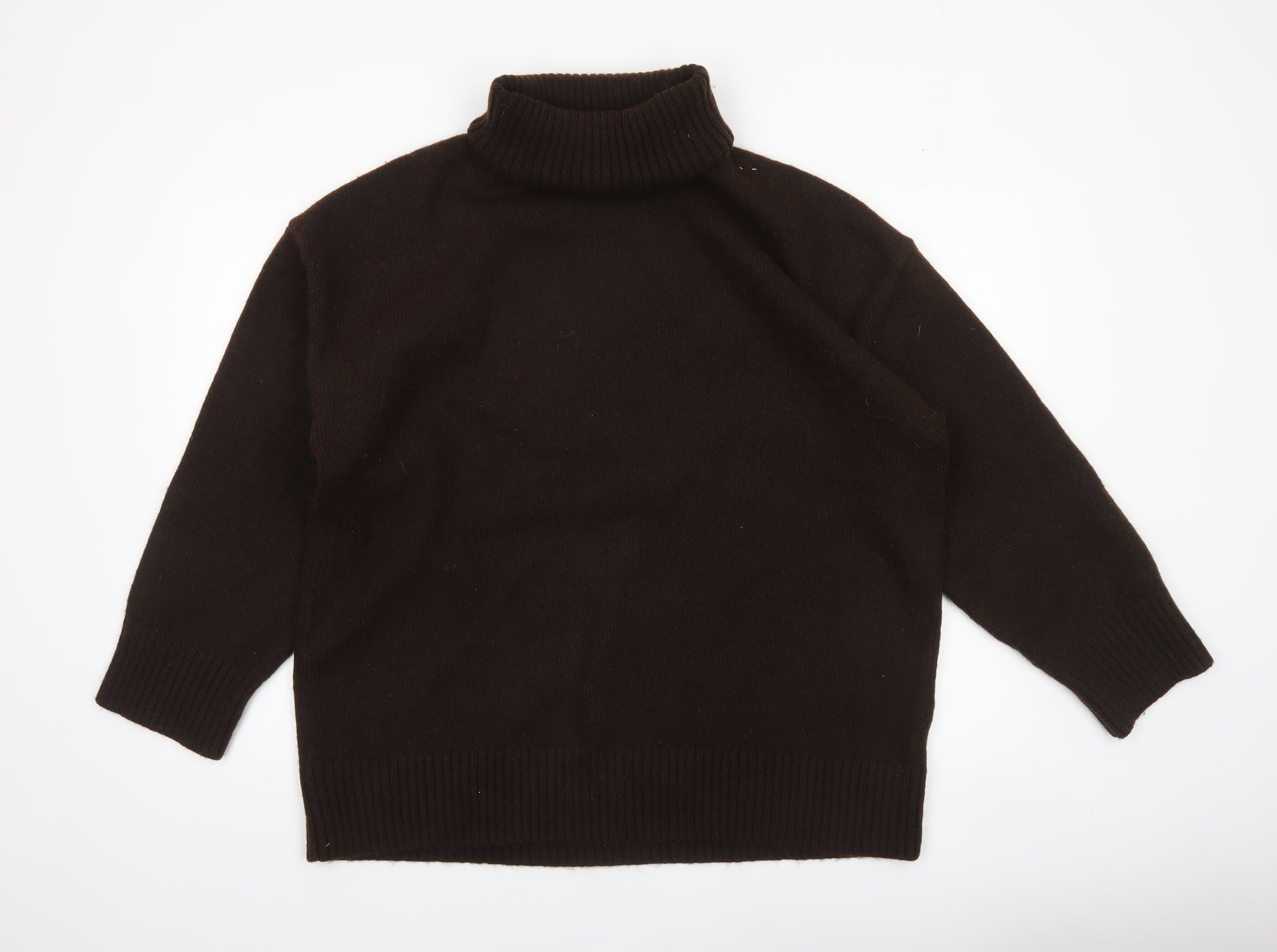 Women Brown Roll Neck Knit Jumper Size M Long Sleeve