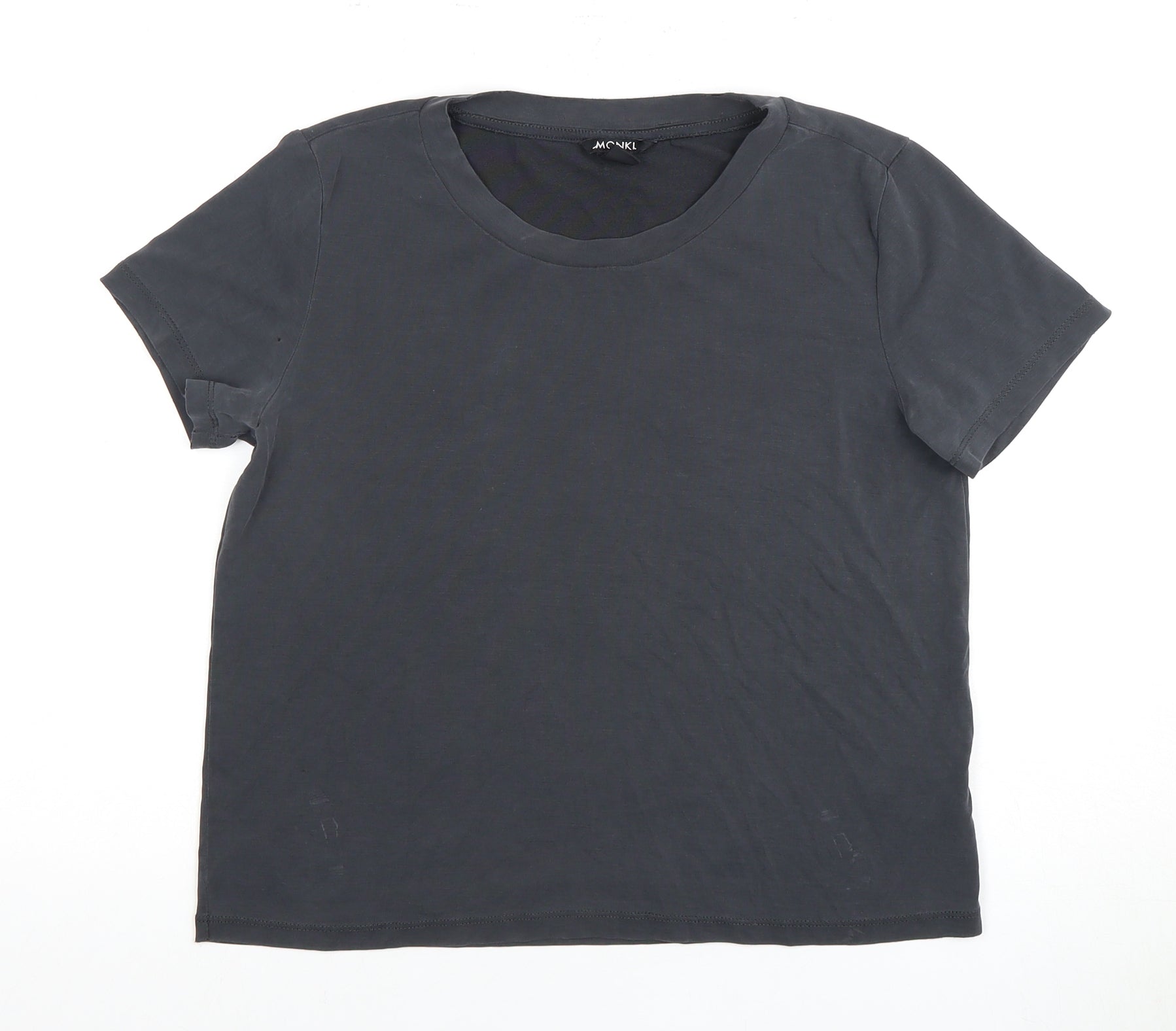 Discover the comfort and simplicity of the Monki Women's Black Basic T-Shirt, perfect for your everyday wardrobe. Designed for casual wear, this versatile piece features a classic round neckline and short sleeves, making it an essential addition to any fashion-forward collection. Crafted from a soft jersey fabric composed of 50% modal and 50% cotton, this T-shirt promises a cosy, breathable fit, ideal for transitional seasons like spring and autumn, as well as warmer summer days. Its regular fit and solid black hue give it a timeless appeal, ensuring it pairs effortlessly with a variety of outfits, whether you're going for a relaxed look with jeans or smartening up with a blazer. Easy to maintain, simply toss it in the machine for hassle-free care. Despite being used, it remains in excellent condition with no visible wear or damage, offering you quality at an affordable price. Elevate your basics with this understated yet stylish top from Monki today.