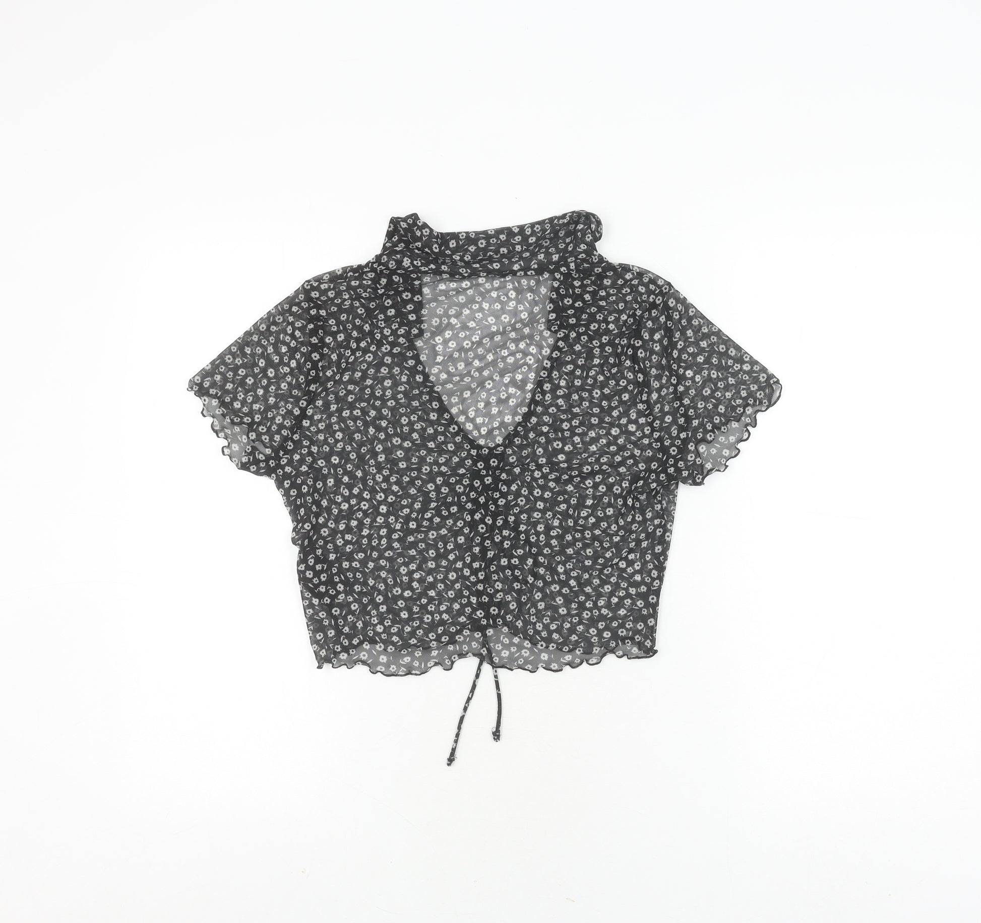 Elevate your spring and summer wardrobe with this charming Monki Women's Cropped Blouse in a sleek black floral pattern. Ideal for women who love a casual yet stylish look, this blouse is a versatile piece that can seamlessly transition from day to night. The short, flutter sleeves and V-neckline add a playful touch, making it a delightful choice for everyday wear or relaxed social gatherings. Crafted from a lightweight mesh fabric with a composition of 96% polyester and 4% elastane, this blouse offers a comfortable slim fit that hugs your silhouette perfectly. With its trendy cropped style and elegant tie closure, it's an effortless statement piece for fashion-forward individuals. Machine washable for easy garment care, this blouse ensures practicality without compromising on style. Whether paired with high-waisted jeans or a chic skirt, it promises to be a staple in your collection. Get ready to bask in compliments and enjoy the remarkable comfort of this exquisite Monki blouse—a must-have for those who favour timeless elegance blended with modern sensibility.