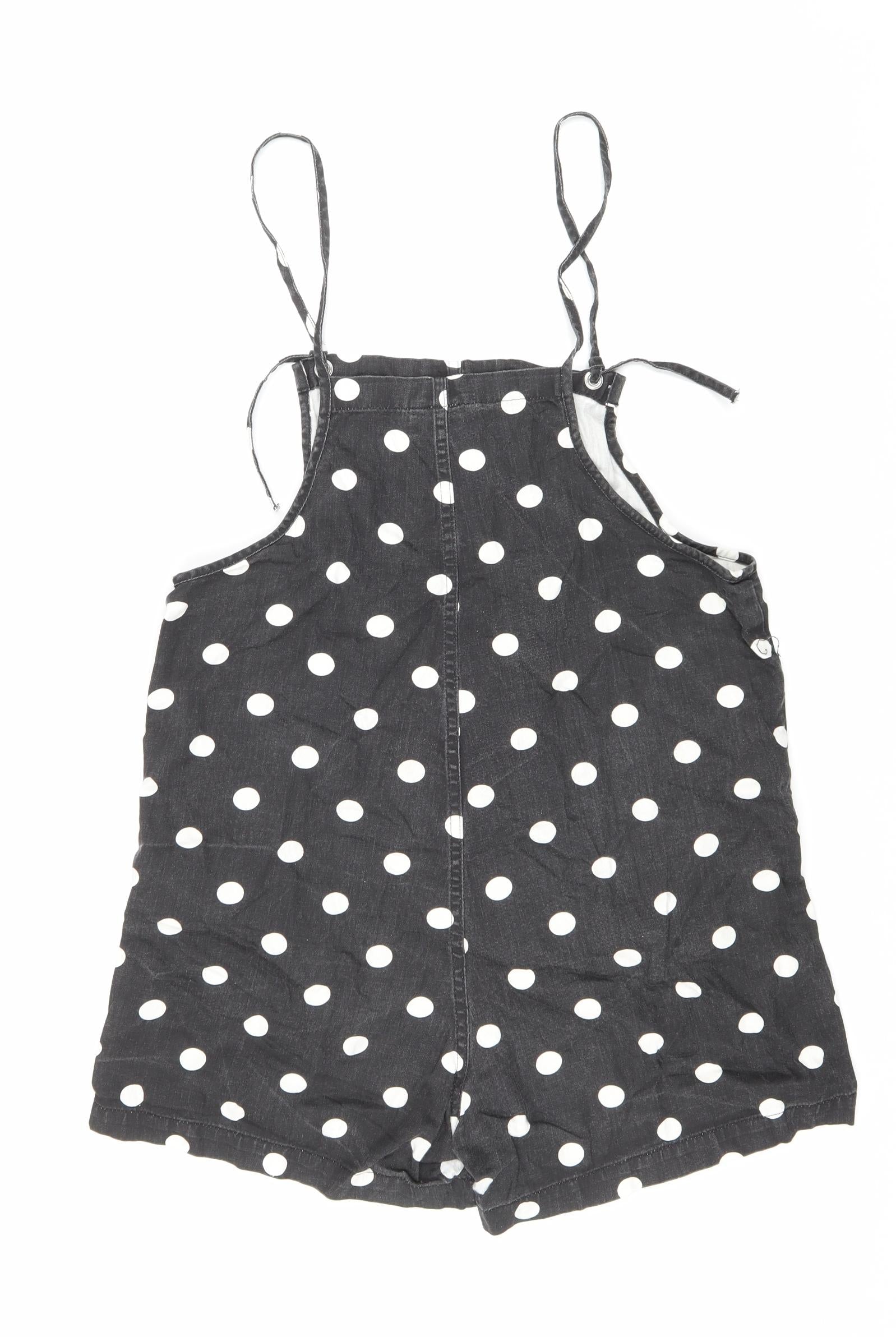 Womens Black Polka Dot Cotton Playsuit One-Piece Size S L3 in Tie