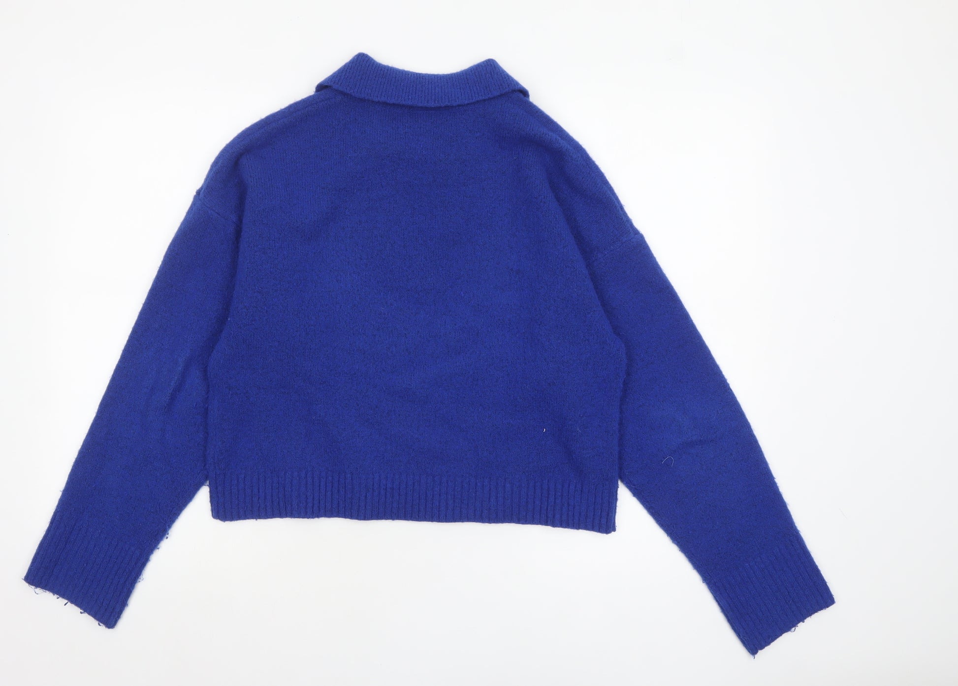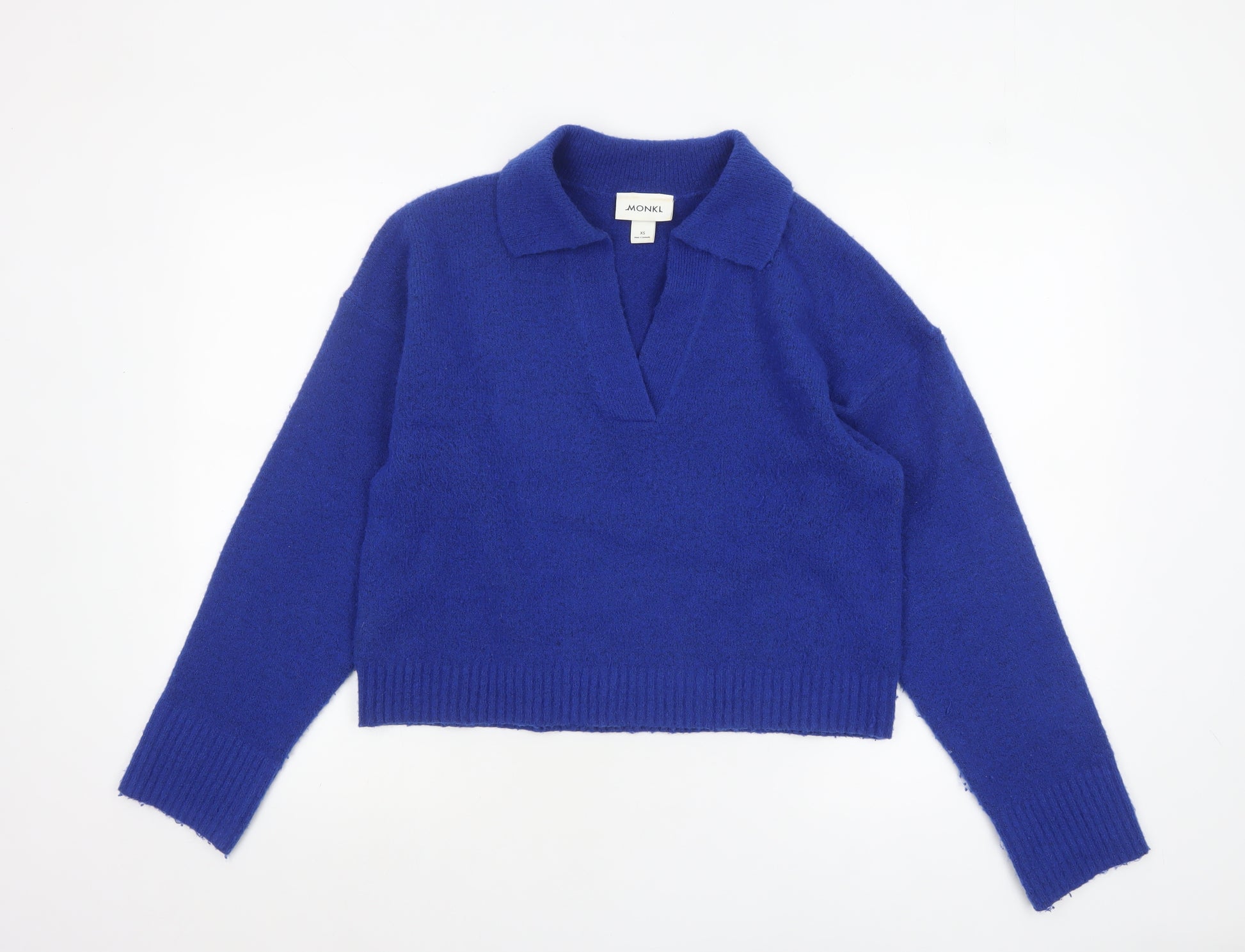 Add a touch of effortless Scandinavian style to your wardrobe with this stunning blue knit jumper from Monki. Crafted for comfort and versatility, this beautifully made piece is ideal for layering during the cooler months. The jumper features a classic collared neckline, creating a smart yet relaxed finish that works perfectly for everyday wear or casual work settings. Designed in a rich cobalt blue that adds vibrancy without overpowering, its soft, stretchy knit fabric offers both comfort and freedom of movement.Made from a durable blend of polyester, wool, and elastane, this jumper combines warmth with lightweight breathability, ideal for transitioning from autumn through winter. The ribbed hem and cuffs add shape and style, ensuring a snug fit that flatters any body type. The neat pullover design makes it easy to style—pair it with jeans for an off-duty look, or tuck it into tailored trousers for a chic, modern outfit. The Monki brand brings its signature minimalist yet playful aesthetic, offering a piece that feels both timeless and on-trend.Conditioned in excellent pre-owned shape, showing minimal signs of gentle wear and no visible damage, this blue Monki jumper is perfect for those who appreciate quality knitwear with a casual-cool edge. Whether for daily wear, working from home, or coffee catch-ups with friends, it’s an easy-to-wear option that complements multiple looks. A must-have for your autumn and winter collection, offering warmth, style, and everyday versatility all in one elegant design.