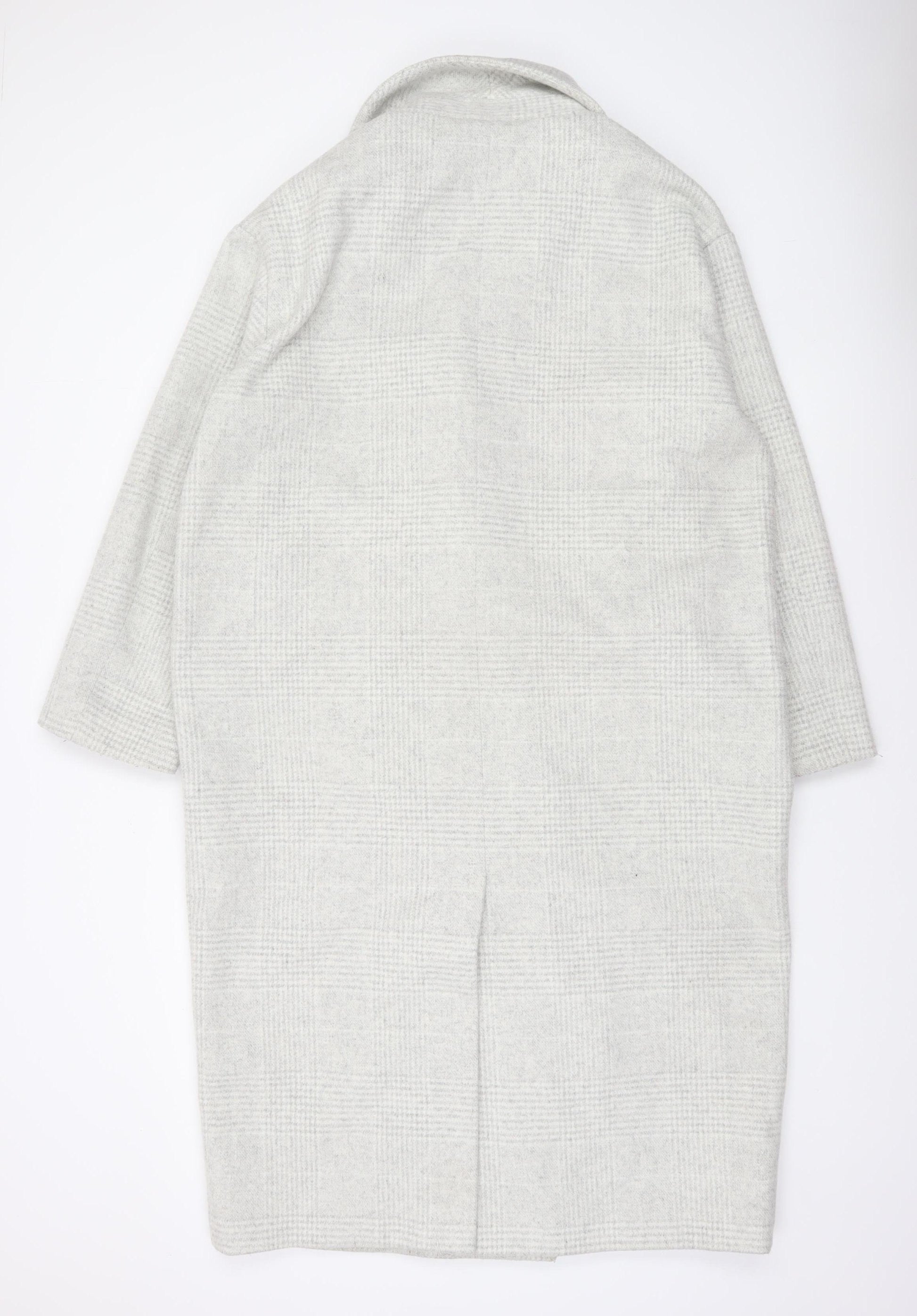 Womens Grey Checked Wool Blend Long Overcoat Size 12