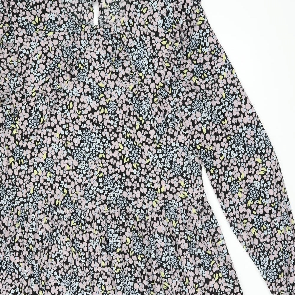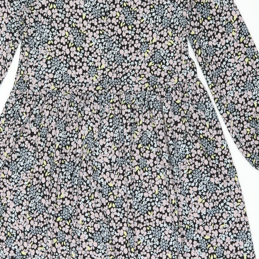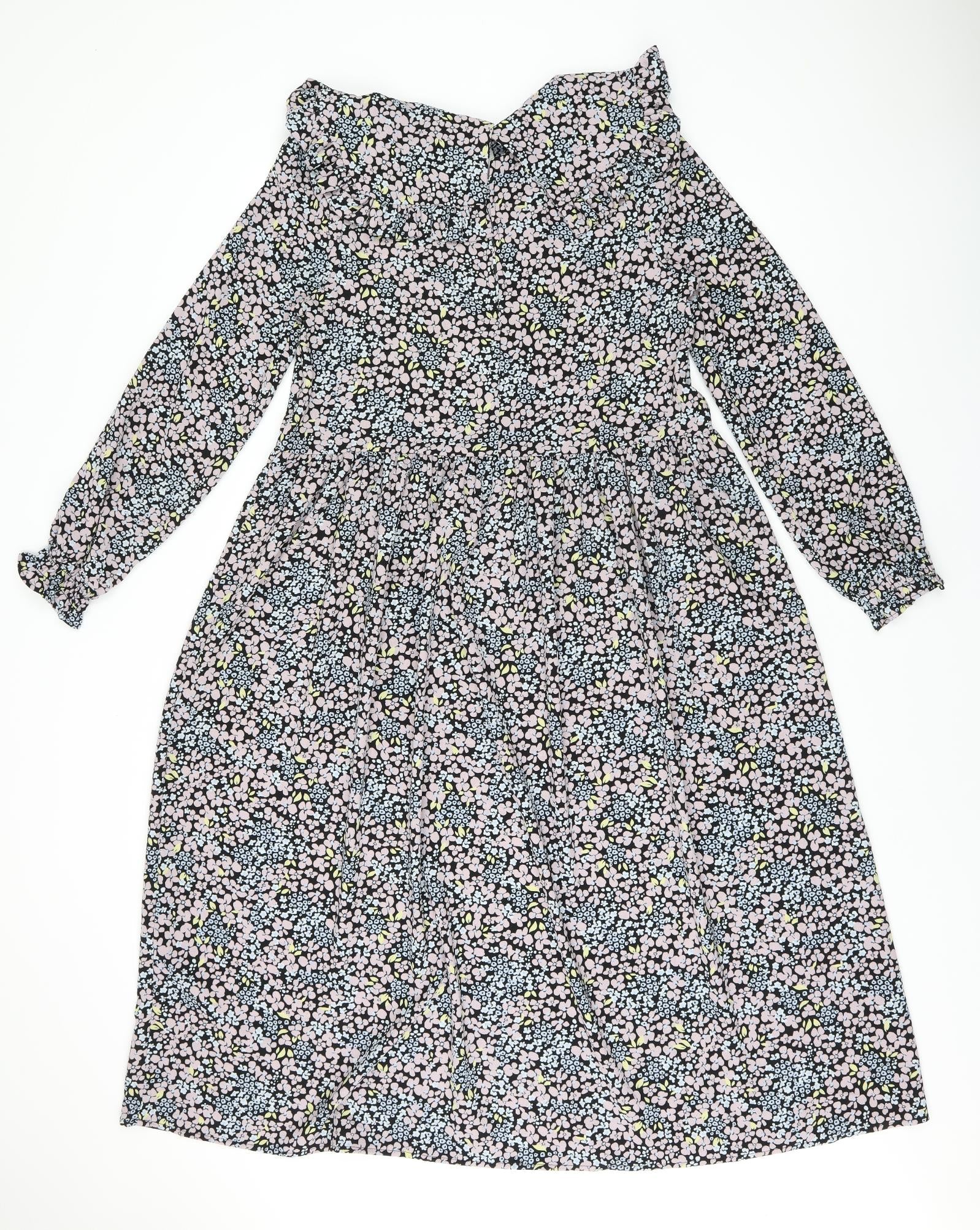 Womens Multicoloured Floral Polyester A-Line Size 6 Collared Button