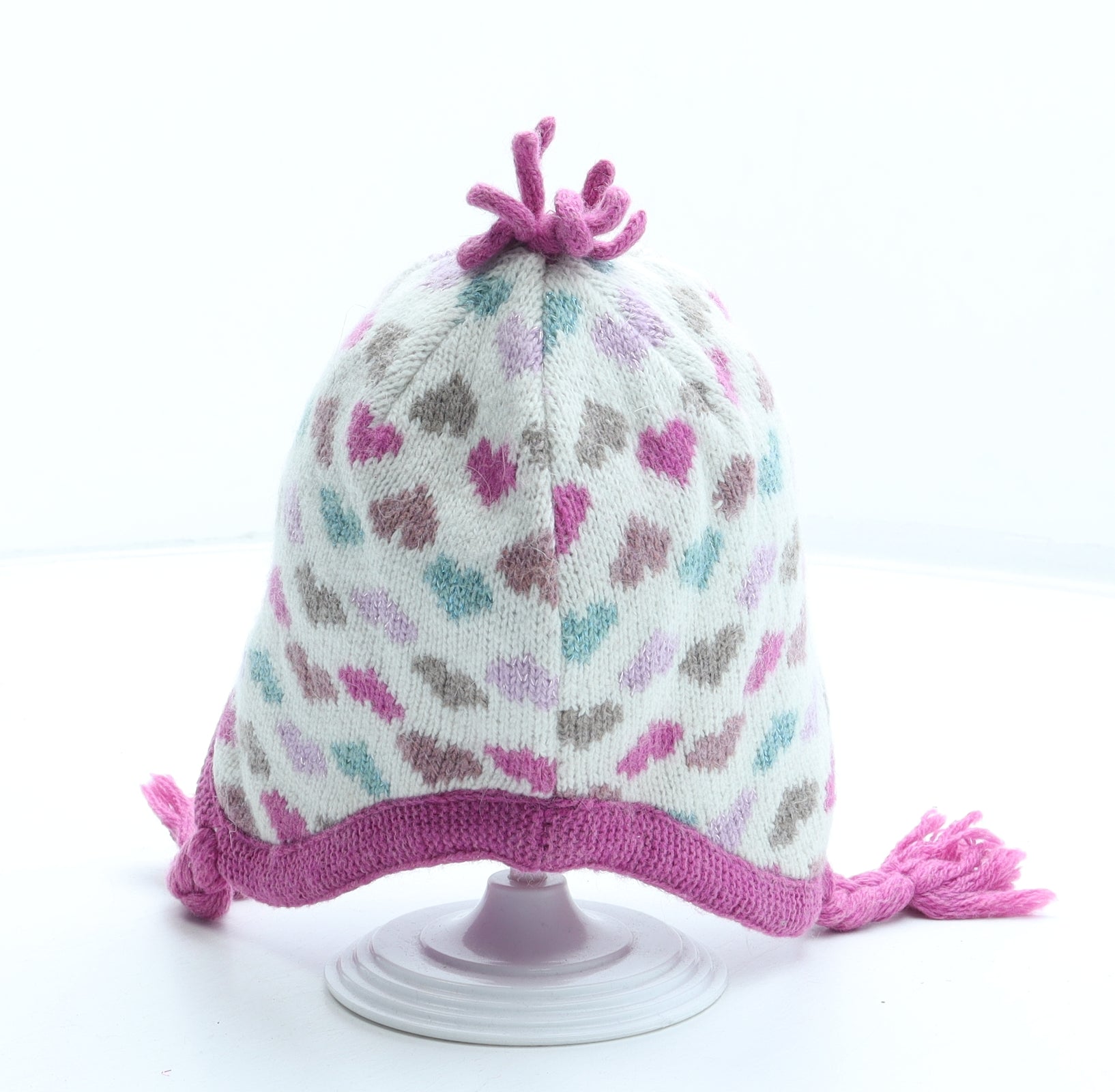 NEXT Girls Multicoloured Geometric Acrylic Winter Hat One Size - Heart Pattern Size 3-6 Years