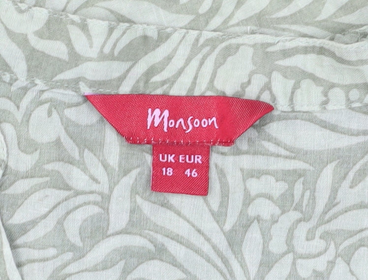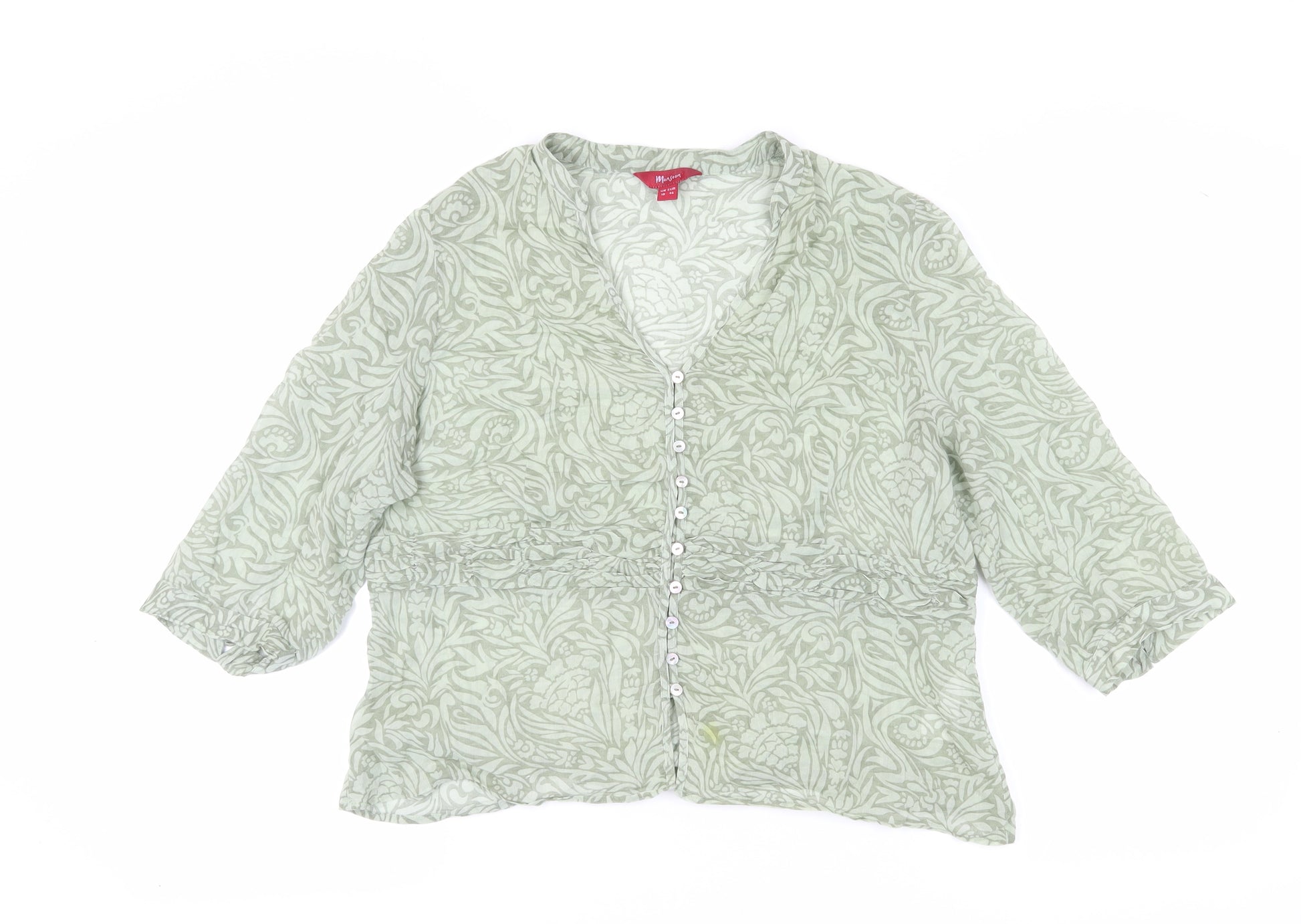 Discover the unique elegance of this Monsoon Women's Blouse, perfect for adding a touch of class to your wardrobe. Crafted in a beautiful shade of green with an enchanting floral pattern, this blouse encapsulates the freshness of spring and summer. The blouse is designed with a V-neckline and 3/4 length sleeves, offering a balance of style and comfort for casual occasions. Made from 100% cotton, it is wonderfully soft against the skin and ensures an uplifting wearing experience. The fitted sleeve design, coupled with the relaxed regular fit, provides a flattering silhouette for a range of body types. Featuring a button-up closure, this blouse is easy to wear and creates a polished look. Although it shows slight discolouration, it remains in good condition, making it a chic, budget-friendly choice. Its woven fabric type and vibrant floral theme make it perfect for those who appreciate detailed craftsmanship. Attractively priced, it is ideal for building stylish yet relaxed ensembles. Whether paired with jeans for a casual outing or layered under a jacket for a more refined appearance, this Monsoon Blouse is bound to become your go-to choice this season.