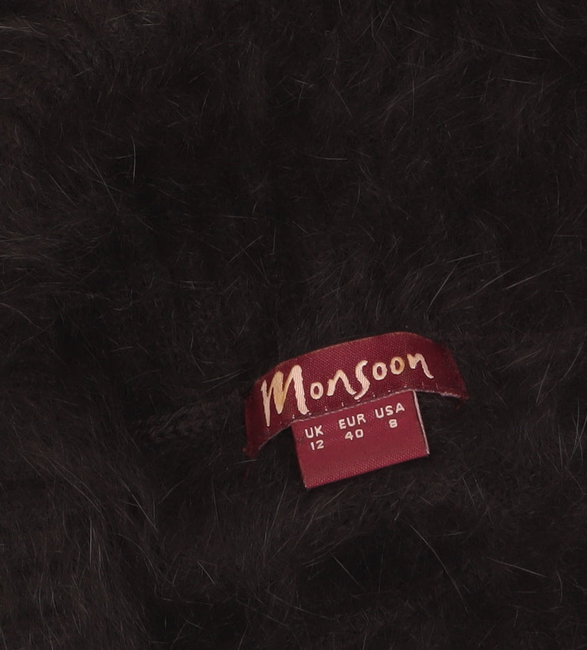 Wrap yourself in pure luxury with this beautiful Monsoon women’s jumper, skillfully crafted for both comfort and sophistication. Rendered in a deep brown tone, this soft and fluffy knit showcases the decadent texture of angora wool, providing unmatched warmth and a sumptuous feel that remains lightweight and breathable. The elegant boat neckline and relaxed fit make it the perfect versatile piece to elevate any outfit, whether you’re dressing up for an evening out or layering casually for a day indoors. Designed with a flattering shape and 3/4 sleeves, this jumper offers effortless poise and comfort. Its refined simplicity means it pairs beautifully with tailored trousers, pencil skirts, or jeans. The fuzzy angora exterior catches the light with a gentle sheen, enhancing its premium look and feel. Ideal for the autumn and winter seasons, it provides cozy insulation without compromising on style. Crafted from a blend of 70% angora and 30% nylon, the fabric ensures a soft touch with just the right level of durability and stretch. Monsoon’s careful craftsmanship is evident in every detail, and this piece embodies understated glamour. The brown hue complements a wide selection of wardrobe colours, making it an easy-to-style essential you’ll reach for again and again. In excellent pre-owned condition, this jumper shows minimal signs of wear and remains in beautiful shape. Perfect for casual outings, social events, or even workwear, it’s a timeless addition to your knitwear collection. Step into the season with warmth, texture, and elegance — this Monsoon angora jumper delivers all three beautifully.