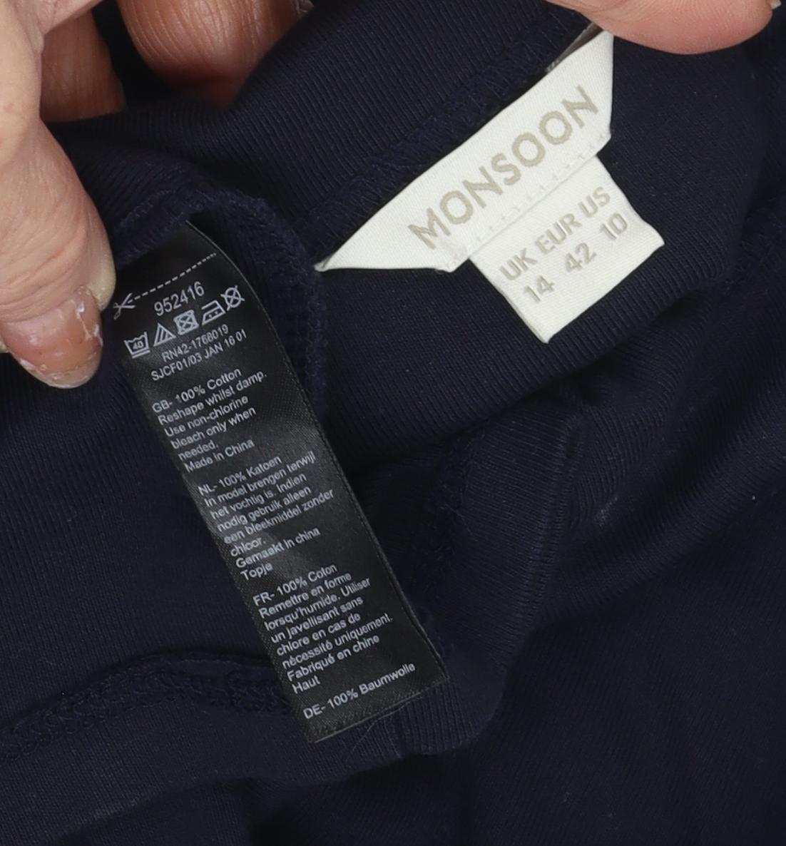 Elevate your casual wardrobe with this chic Monsoon Women's Off-Shoulder Blouse in a classic black hue, perfectly tailored for size 14. Crafted from 100% cotton, this jersey fabric blouse ensures comfort and breathability, making it an ideal choice for the warm summer months. The off-the-shoulder design adds a touch of elegance to the basic style, while the casual short sleeves provide a relaxed fit suitable for any casual occasion. Whether you're heading out for a brunch date or a day at the beach, this versatile piece offers the perfect blend of style and comfort. Pair it with your favourite jeans or a stylish skirt to create an effortless yet polished look. In excellent condition with no visible wear or damage, this blouse promises to be a reliable staple in your collection. Easy to care for with its machine washable feature, it's a practical addition that you'll reach for time and time again.