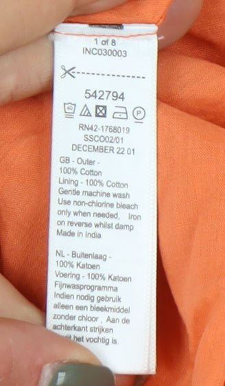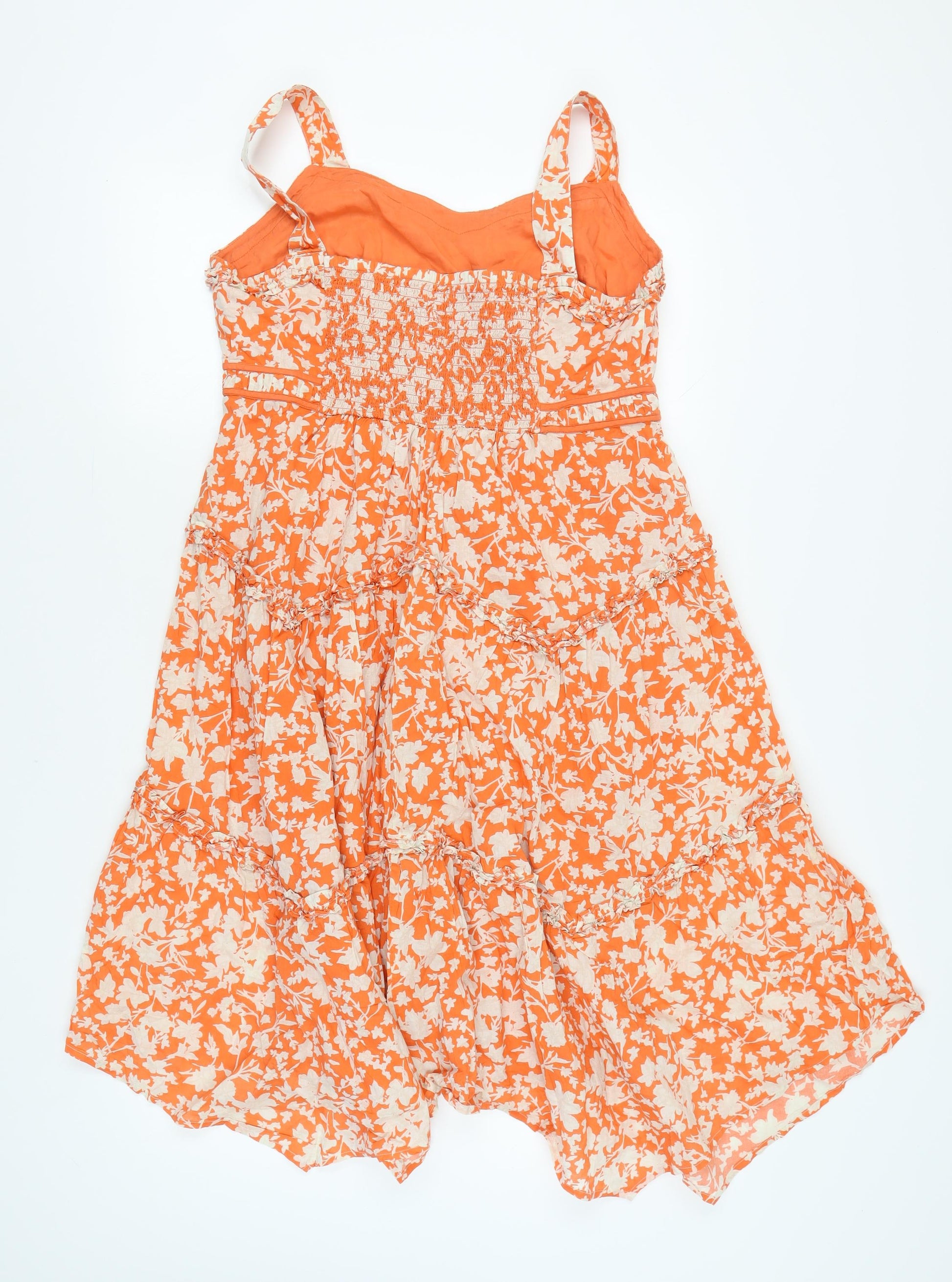 Discover the perfect blend of comfort and style with this stunning Monsoon A-Line dress, crafted from breathable 100% cotton. This dress is ideal for warm summer days and casual outings. In an eye-catching orange floral pattern, the Midi length and lightweight fabric make it a staple for your summer wardrobe. The sleeveless, strappy sleeve design adds a touch of elegance, while the smocked detailing at the back ensures a flattering fit. Perfect for casual occasions or a day of travel, this versatile dress transitions effortlessly from day to night. Accented with subtle ruffles, this dress exudes a bohemian charm that is both timeless and chic. Pair with sandals for a carefree summer look that’s sure to steal the show. Easy to care for with machine washability, this dress promises comfort without compromising on style. Elevate your fashion game with this beautifully crafted piece from Monsoon.