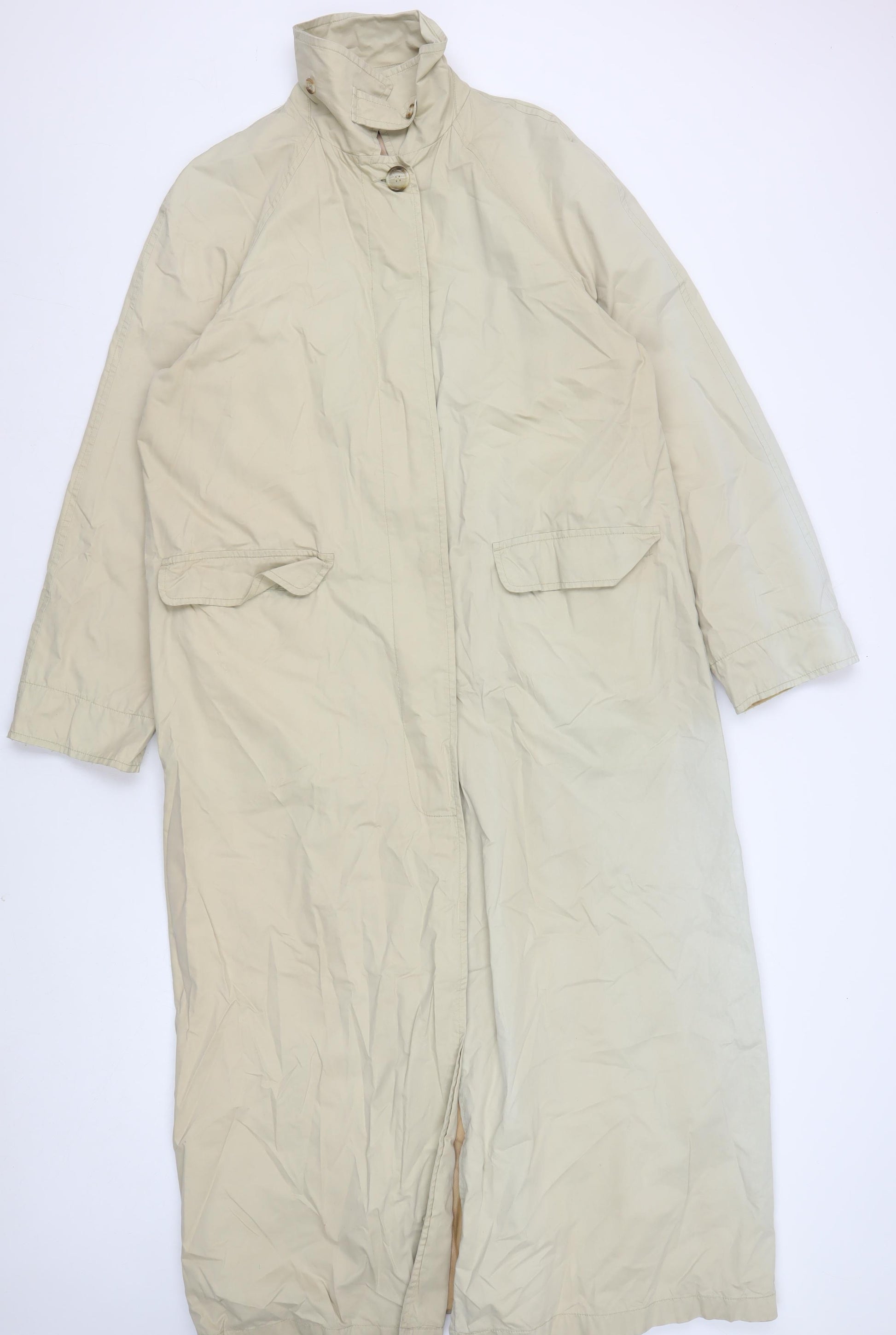 This elegant Monsoon women's trench coat in a versatile beige is perfect for adding a touch of sophistication to any outfit. Crafted from 100% cotton, this long trench coat is both breathable and durable, making it ideal for the fluctuating temperatures of autumn and spring. The classic trench coat style features a smart, collared neckline with button accents, and practical pockets for added convenience. The coat's regular fit ensures comfort for everyday wear, whether you're heading to work or enjoying a casual outing. Its timeless design, complete with a beige twill fabric, offers a smooth and polished appearance. Despite showing slight wear and being a bit wrinkled, this coat is in good overall condition and remains a fantastic choice for those looking for a stylish, yet functional layering piece. With machine-washable care instructions, maintaining this coat's pristine appearance is effortless. Elevate your wardrobe with this chic Monsoon trench coat, ensuring you stay fashion-forward and comfortable.