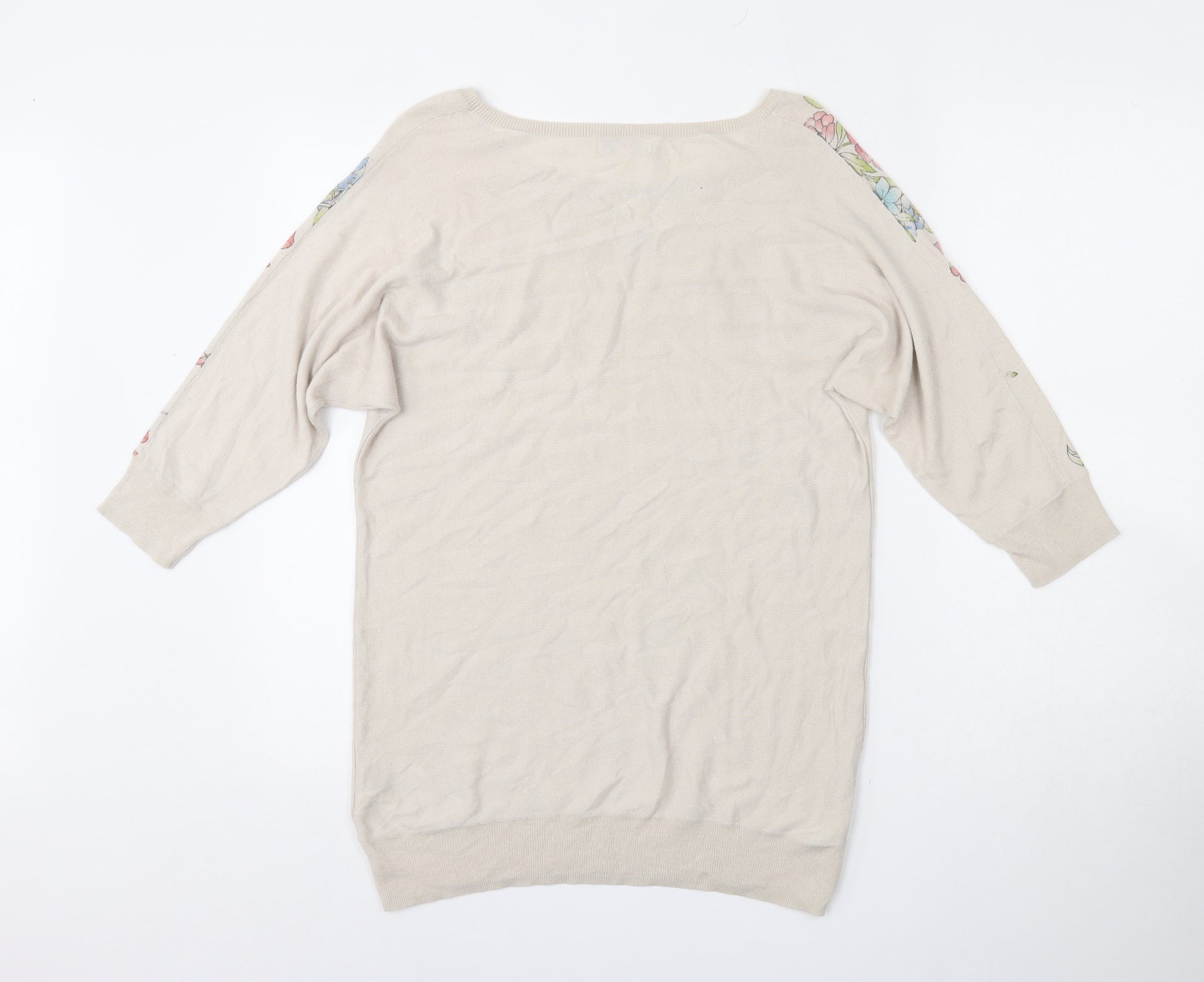 Womens Beige Round Neck Floral Viscose Pullover Jumper Size M
