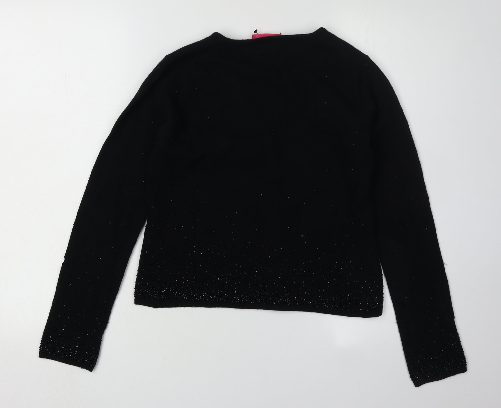 Zara Women Black Viscose Beaded Sleeve V-Neck Jumper Size S