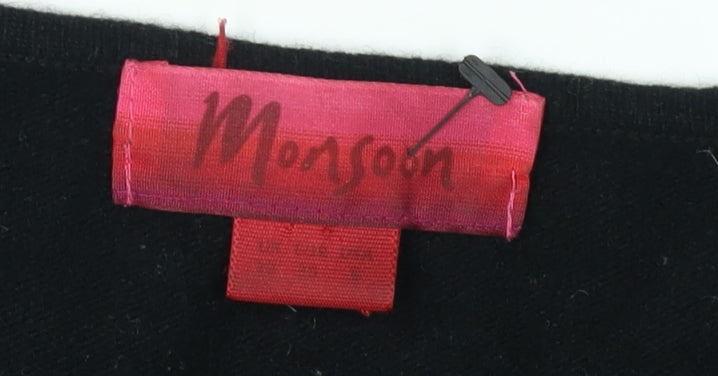 Discover timeless elegance with this Monsoon black cardigan, perfect for adding a touch of class to your autumn and winter wardrobe. Crafted from a luxurious blend of wool and nylon, this women's cardigan offers a soft, warm feel ideal for cooler months. The rich black colour pairs effortlessly with any outfit, while the V-neckline adds a classic touch. Designed for casual outings, its long sleeves ensure comfort and warmth. Though pre-loved, it remains in excellent condition, showing no visible wear. A versatile addition to any wardrobe, this Monsoon cardigan marries style and practicality, making it a must-have for every fashion-forward woman.