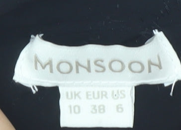 Introducing the Monsoon Women's Black Floral Dress in size 10 - a stunning addition to your wardrobe that effortlessly combines elegance with comfort. This sleeveless dress is perfect for casual outings, featuring a scoop neckline that adds a touch of sophistication. Crafted from 100% viscose material, this dress is designed to offer a lightweight and breathable feel, making it ideal for warmer days. The woven fabric type further enhances its durability and style, ensuring you'll enjoy wearing it for many seasons to come. The dress showcases a beautiful floral pattern set against a classic black background, making it a versatile piece for various occasions. Whether you're heading out for a day of shopping or meeting friends for brunch, this dress offers the perfect blend of style and comfort. It's also fully lined, providing an additional layer of comfort and ensuring a smooth fit. Caring for this dress is hassle-free with the hand wash only garment care, allowing you to maintain its vibrant appearance with ease. The new condition, complete with the original tags, reflects the pristine quality of this dress, free from any defects. Embrace the timeless charm of floral patterns and the trusted quality of Monsoon with this exquisite piece. Elevate your casual wardrobe and enjoy the compliments that come your way every time you step out in this chic black floral dress.