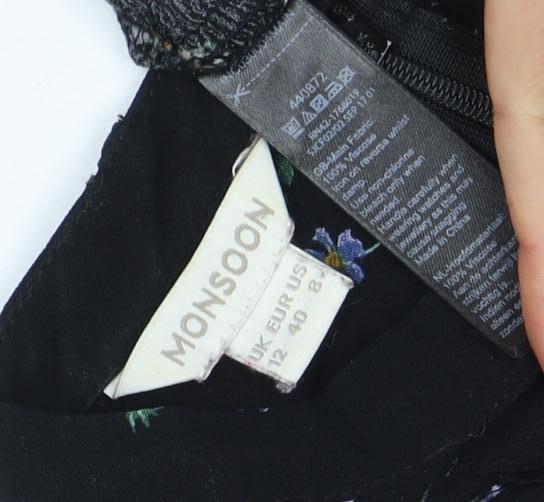 Marks and Spencer Womens Black Geometric Polyester Trapeze & Swing Size 12 Round Neck Zip