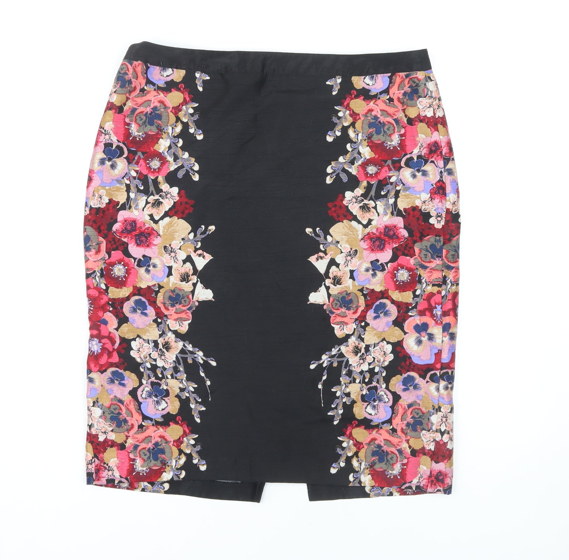 Elevate your wardrobe with this stunning Monsoon pencil skirt, perfect for adding a touch of elegance to any outfit. Crafted in a classic knee-length cut, this skirt features a sophisticated black base adorned with vibrant multicoloured floral patterns, making it a standout piece for any occasion. Designed with a straight and pencil style, it effortlessly combines classic tailoring with modern flair, ideal for party and cocktail events. Made from 100% polyester, it offers durability and comfort, ensuring that you not only look fabulous but feel great too. The zip closure provides a secure fit, while the regular size 12 ensures it flatters your figure. Whether you're gearing up for a night out or adding a chic touch to your casual collection, this skirt is a versatile addition to any fashion-forward woman's wardrobe. Despite being pre-loved, it remains in excellent condition with no visible signs of wear, promising many stylish outings to come. Pair it with a fitted blouse and heels for a refined look or a casual top for a more laid-back, yet chic ensemble. Don’t miss out on the chance to own this unique piece from Monsoon that promises to bring joy and style to your clothing collection.