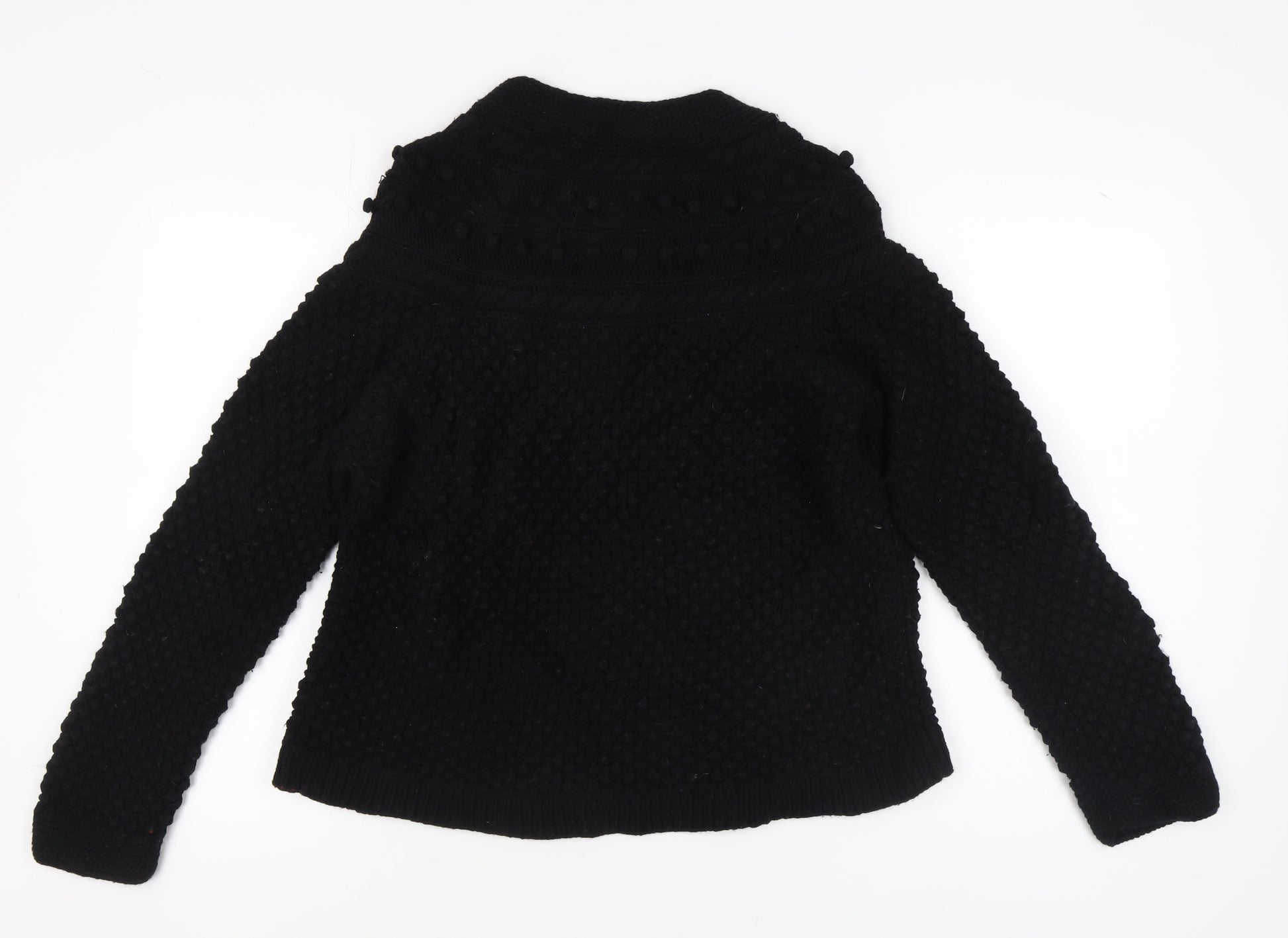 Elevate your cold-weather ensemble with this exquisite Monsoon women's jumper. Crafted for both comfort and style, this black chunky-knit piece offers an elegant touch to casual wear. The luxurious blend of lambswool, cotton, and angora ensures warmth and softness, perfect for those chilly autumn and winter days. Featuring a classic button accent, this long sleeve jumper exudes sophistication and charm. Its regular fit and plus size type accommodate a comfortable, flattering silhouette that suits various body types. Suitable for casual occasions or cosy outings, pair it effortlessly with your favourite jeans or skirt for a complete look. Designed with meticulous attention to detail, this Monsoon jumper ensures you stand out in understated elegance, a must-have addition to any wardrobe.