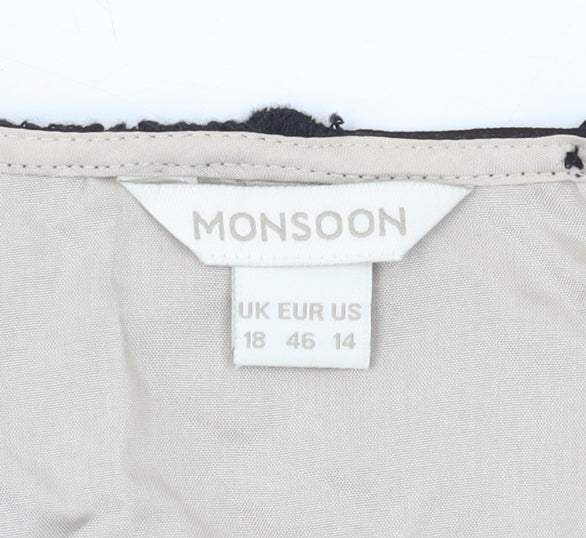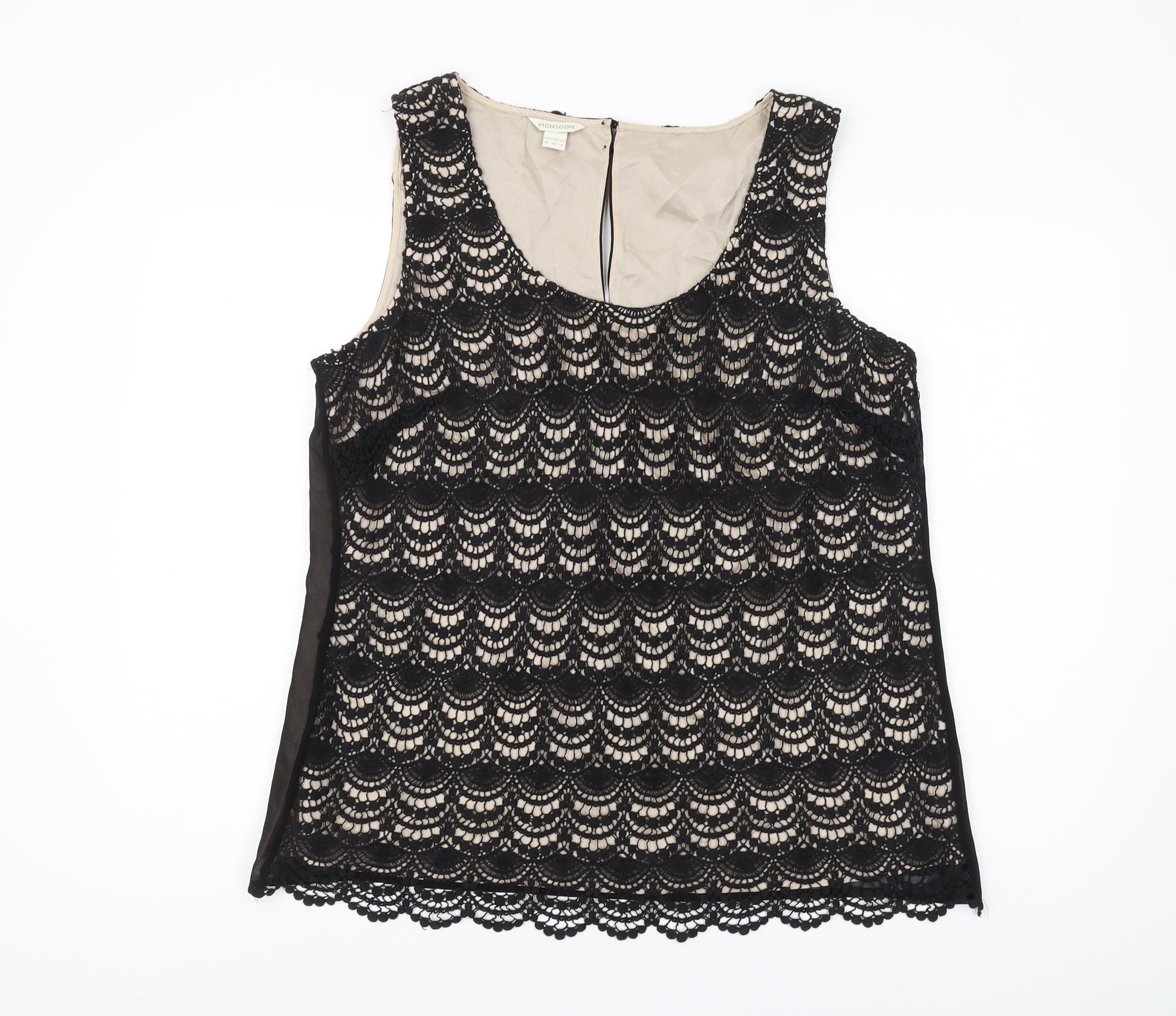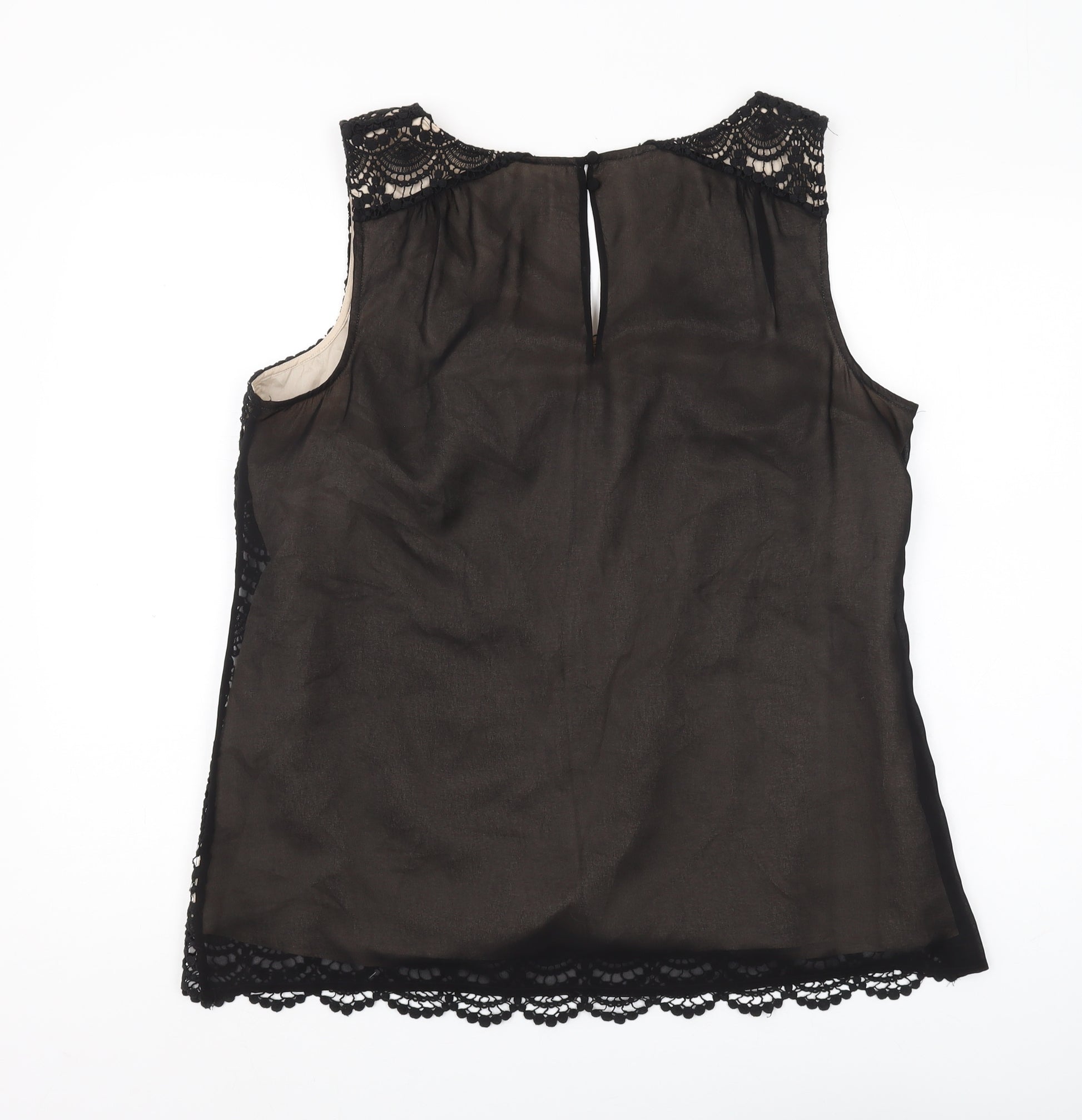Step out in style with this elegant Monsoon camisole, perfect for summer outings and cocktail parties. Crafted from exquisite black lace, this tank top features a flattering scoop neckline and a regular fit, ensuring you look sophisticated and chic. The sleeveless design makes it ideal for warm weather, while the cotton material offers comfort and breathability. Whether attending a formal gathering or enjoying a casual night out, this top provides an elegant touch to any outfit. Perfectly paired with either a skirt or trousers, the solid pattern adds a classic vibe, making it a versatile addition to your wardrobe. Don't miss the chance to add this beautiful and timeless piece to your collection.