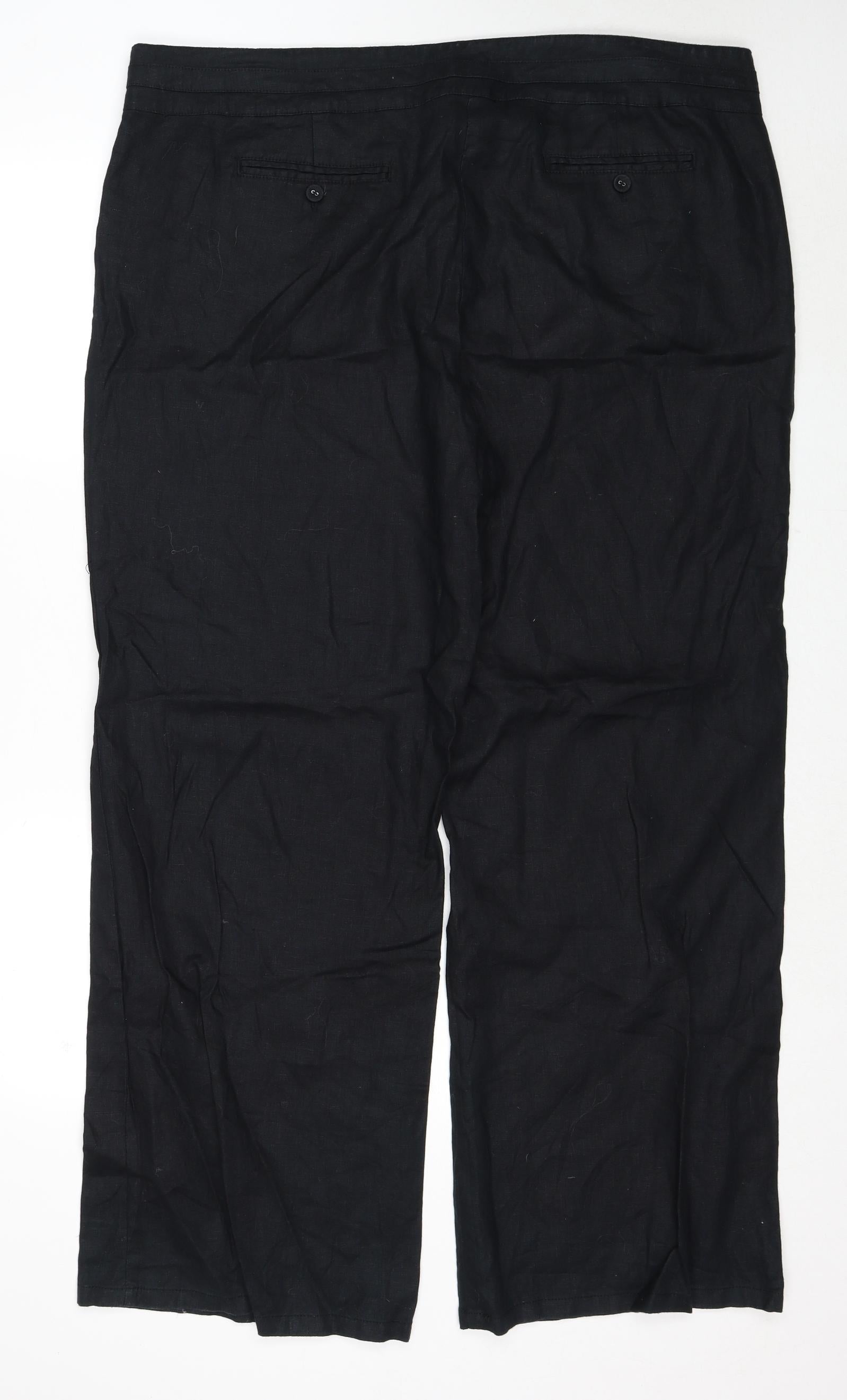 Womens Black Linen Trousers Size 44 in Regular Zip
