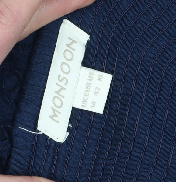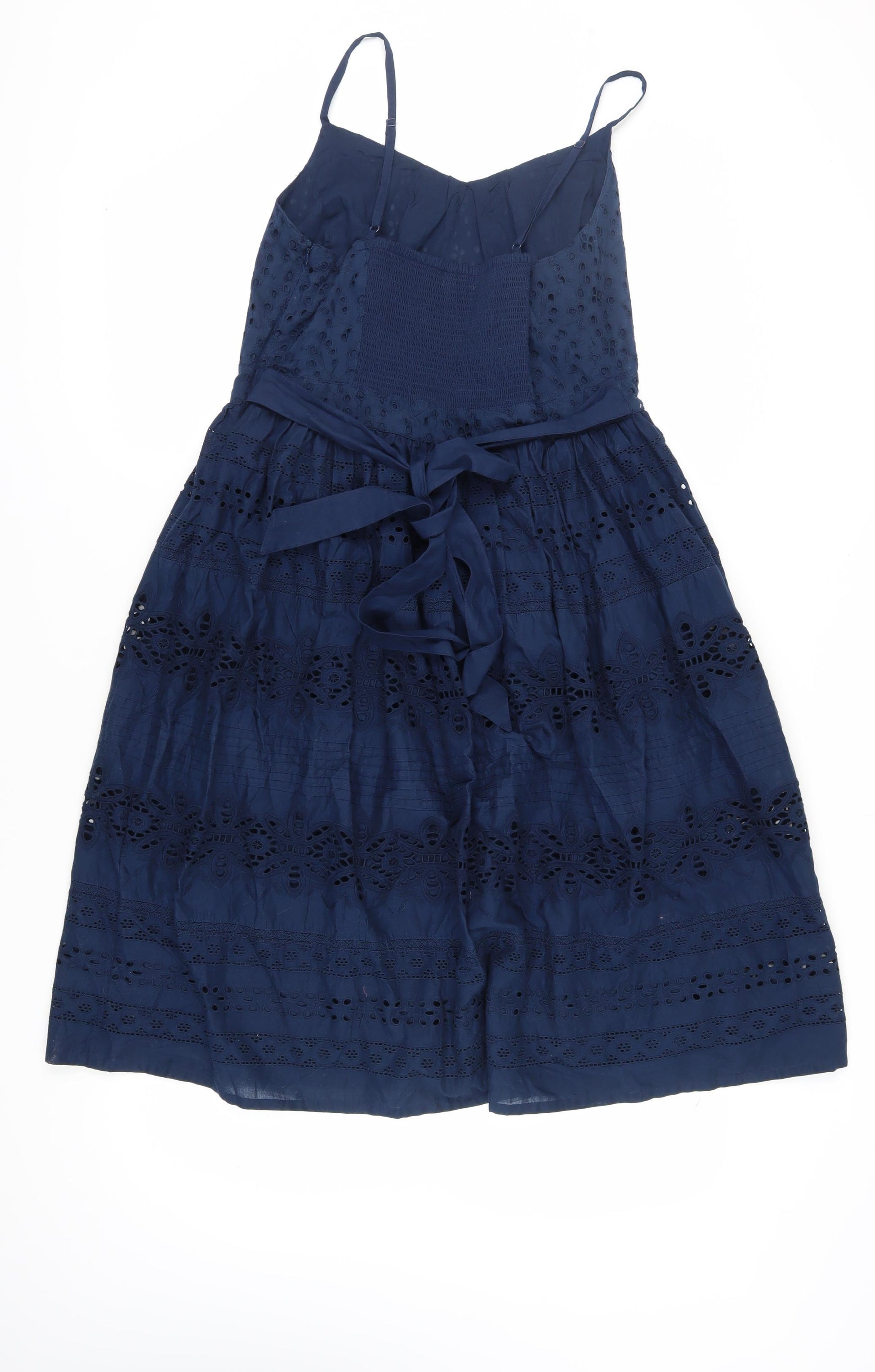 Discover elegance in this Monsoon Women's A-Line Midi Dress, tailored to accentuate your feminine style. The delightful blue shade is perfect for both casual outings and cocktail parties, offering versatility and chic appeal. With a fitted bodice and a flowy skirt, this dress flatters all body types while maintaining comfort. The dress features a sweetheart neckline and strappy sleeves, adding to its sophisticated charm. Made from a lightweight cotton lace fabric, it’s an ideal choice for spring and summer seasons. The ruffle accents add a touch of flair, making it a must-have in your wardrobe. Its pullover closure allows for ease of wear, while the smocked back ensures a perfect fit. Enjoy the goodness of natural cotton material, which assures breathability and comfort in warm weather conditions. Pair it with your favourite heels and accessories to elevate your look and be the centre of attention. Machine washable for hassle-free care, this distinct piece from Monsoon will soon become your go-to attire for many occasions. Available in UK size 14, this regular-sized dress adapts seamlessly to your fashion needs, making it a timeless addition to your collection. Don't miss out on this elegant and practical piece that promises to showcase your unique style at every event.