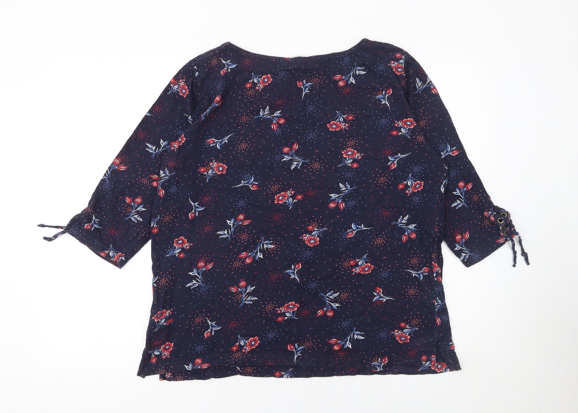 Womens Blue Floral 3/4 Sleeve Tunic Blouse Size 18