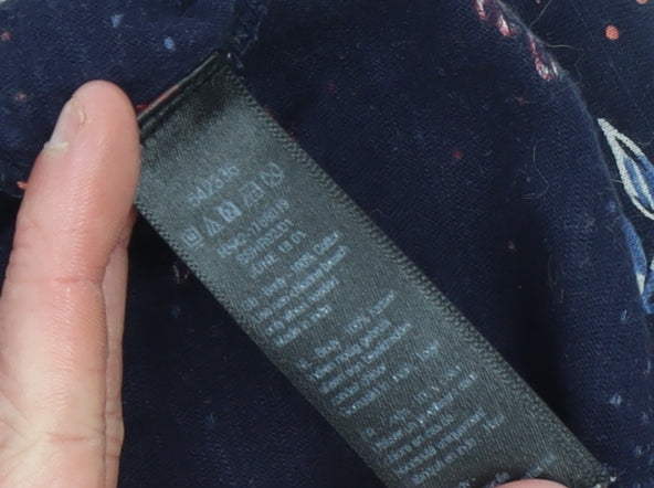 Refresh your wardrobe with this stylish Monsoon women's floral tunic blouse in classic navy blue. Beautifully adorned with a delicate all-over red and white floral print, this blouse is perfect for adding a touch of effortless elegance to your everyday looks. Crafted from 100% viscose, it offers a soft, lightweight, and breathable fabric that feels comfortable against the skin, making it perfect for spring and summer wear. Featuring a flattering boat neckline and relaxed fit, this tunic-style top drapes gracefully over the body for a timelessly feminine silhouette. The 3/4 sleeves include drawstring detailing at the cuffs, adding subtle texture and a touch of uniqueness to the design. Easy to style, this pullover blouse pairs perfectly with jeans, tailored trousers, or skirts for a versatile look that transitions seamlessly from casual daywear to smart-casual occasions. Designed with both comfort and style in mind, it's ideal for a range of occasions — from casual outings and weekend gatherings to travel and relaxed workwear days. The woven viscose fabric ensures breathability and fluidity, keeping you cool and chic all day long. In excellent pre-owned condition, this blouse shows minimal signs of wear and has been well maintained, with no visible marks or defects. Its relaxed, easy-to-wear fit and flattering cut make it a must-have addition to any woman’s wardrobe. Machine washable for easy care and long-lasting freshness, this Monsoon tunic embodies quality craftsmanship and timeless design. Whether you’re after a standout floral top for daywear or a sophisticated yet understated blouse to dress up with accessories, this beautiful piece is the ideal choice. Embrace Monsoon’s signature blend of comfort, elegance, and floral charm with this versatile and stylish blouse — perfect for a confident, feminine look every time.