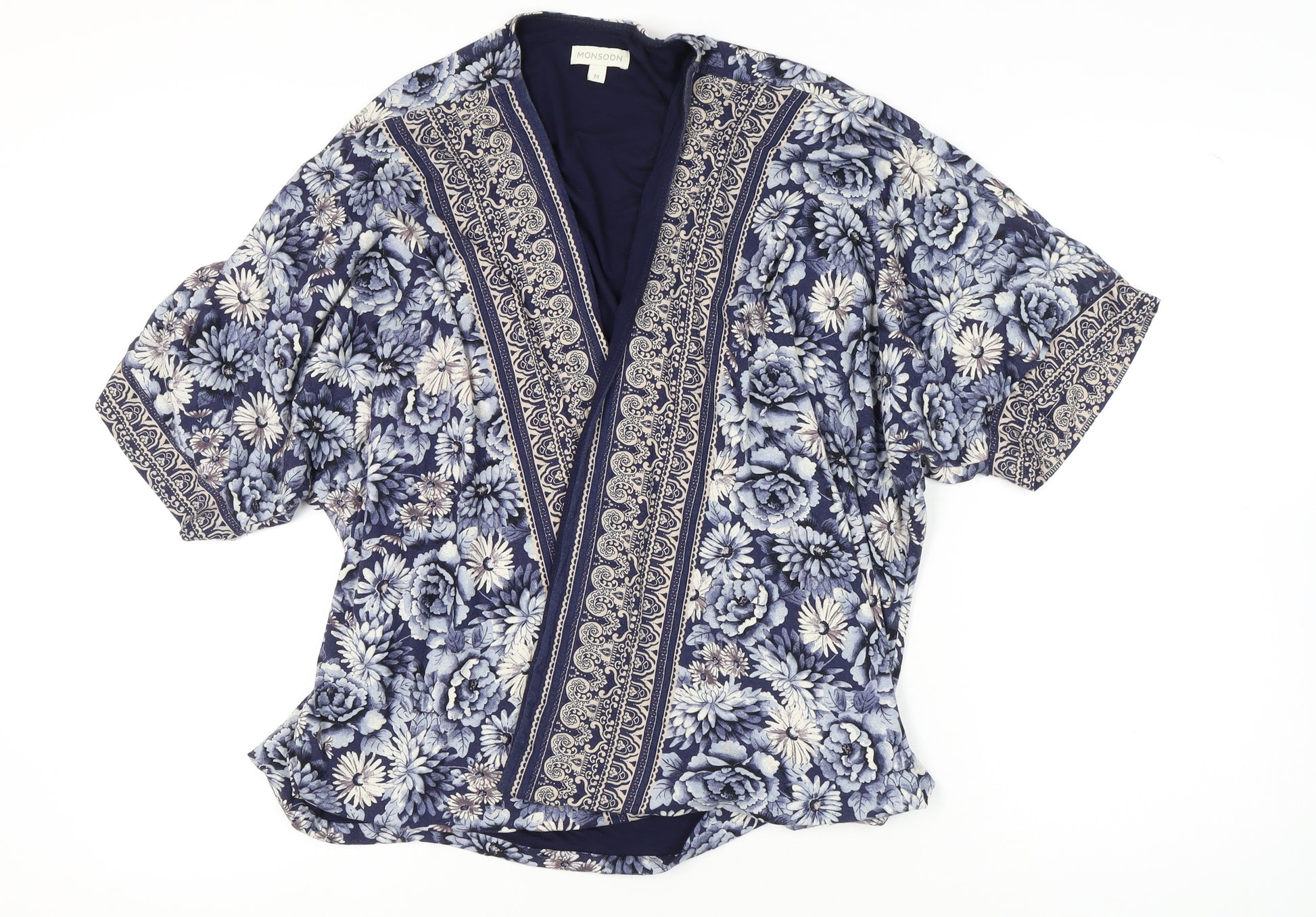 This chic Monsoon Women's Kimono Tunic offers a perfect blend of style and comfort. Adorned with a captivating blue floral pattern, it brings a touch of elegance to any casual spring or summer outfit. Made from soft, breathable viscose with a hint of elastane for comfortable stretch, it's perfect for those warm, sunny days. The open closure and short dolman sleeves create a relaxed, easygoing silhouette that drapes beautifully, making it a versatile piece for any wardrobe. Ideal for casual outings or relaxed evenings, its lightweight woven fabric ensures you stay cool and fashionable. Machine washable for easy care, this top offers a convenient and stylish addition to your clothing collection.