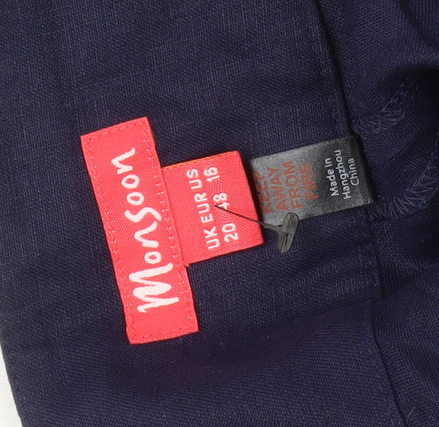 Step into casual elegance with this stunning Monsoon skirt, designed exclusively for women. Featuring a graceful floral pattern on a sophisticated blue backdrop, this skirt adds a touch of artistry to your wardrobe. Constructed from 100% linen, it promises comfort and breathability, making it perfect for any casual occasion. The skirt is comfortably tailored for a UK size 20 and presents an effortless, chic silhouette. Meticulously crafted with machine washable fabric, this piece combines convenience with style. Its excellent condition, showcasing only slight wrinkling, makes it a fantastic pick for fashion-conscious individuals. Dive into timeless fashion with this beautiful Monsoon floral skirt.