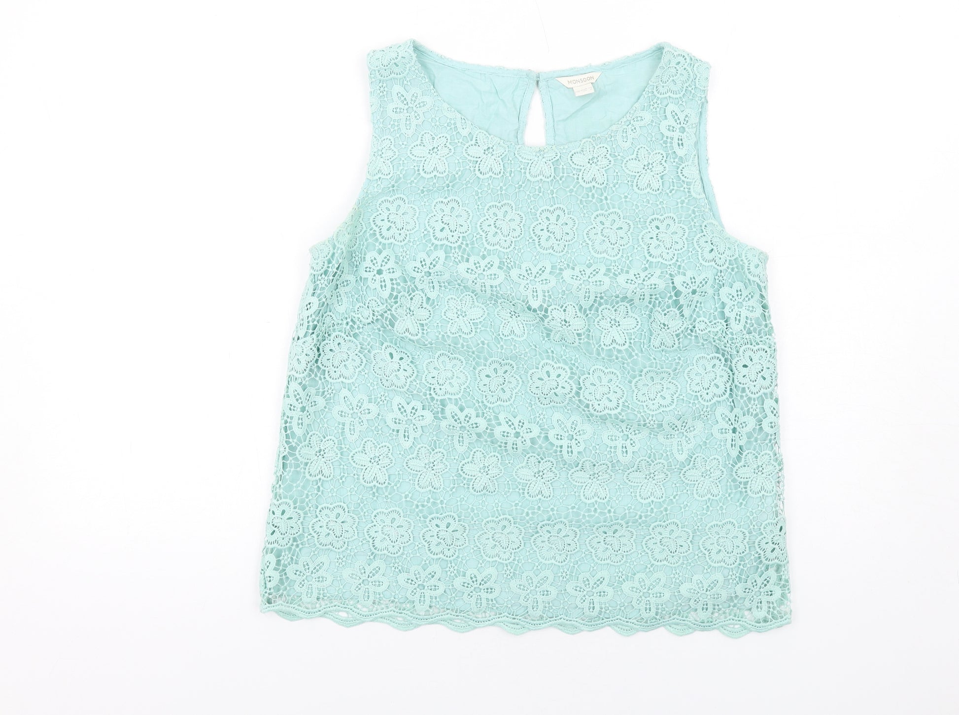 Womens Blue Floral Polyester Basic Tank Size 12 Round Neck