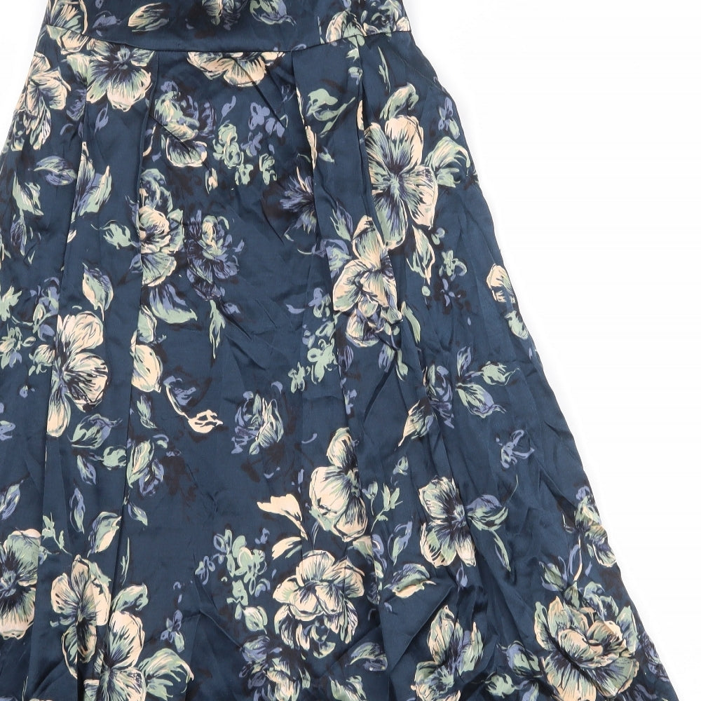 Quiz Womens Blue Floral Polyester Wrap Dress Size 10 V-Neck Zip