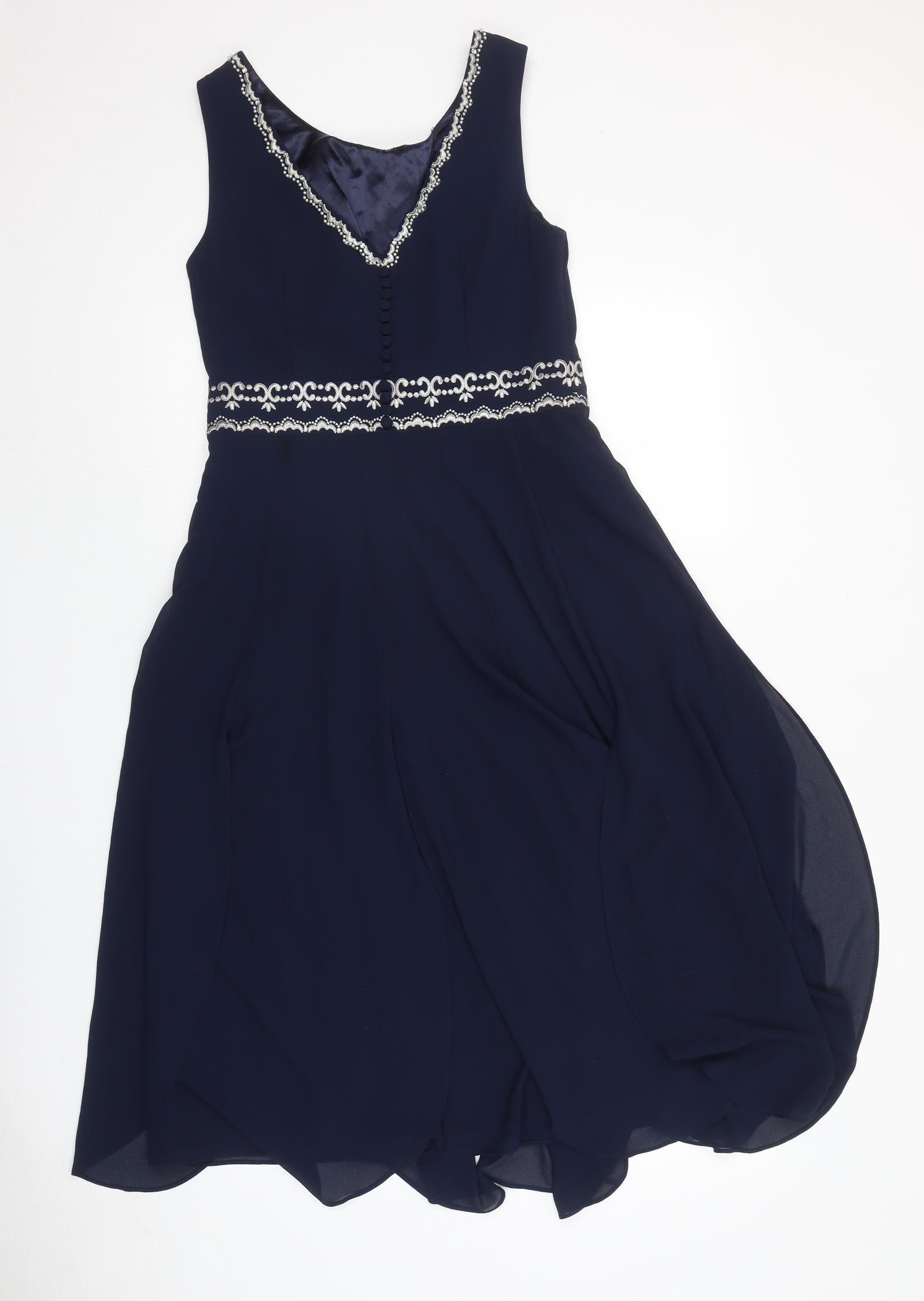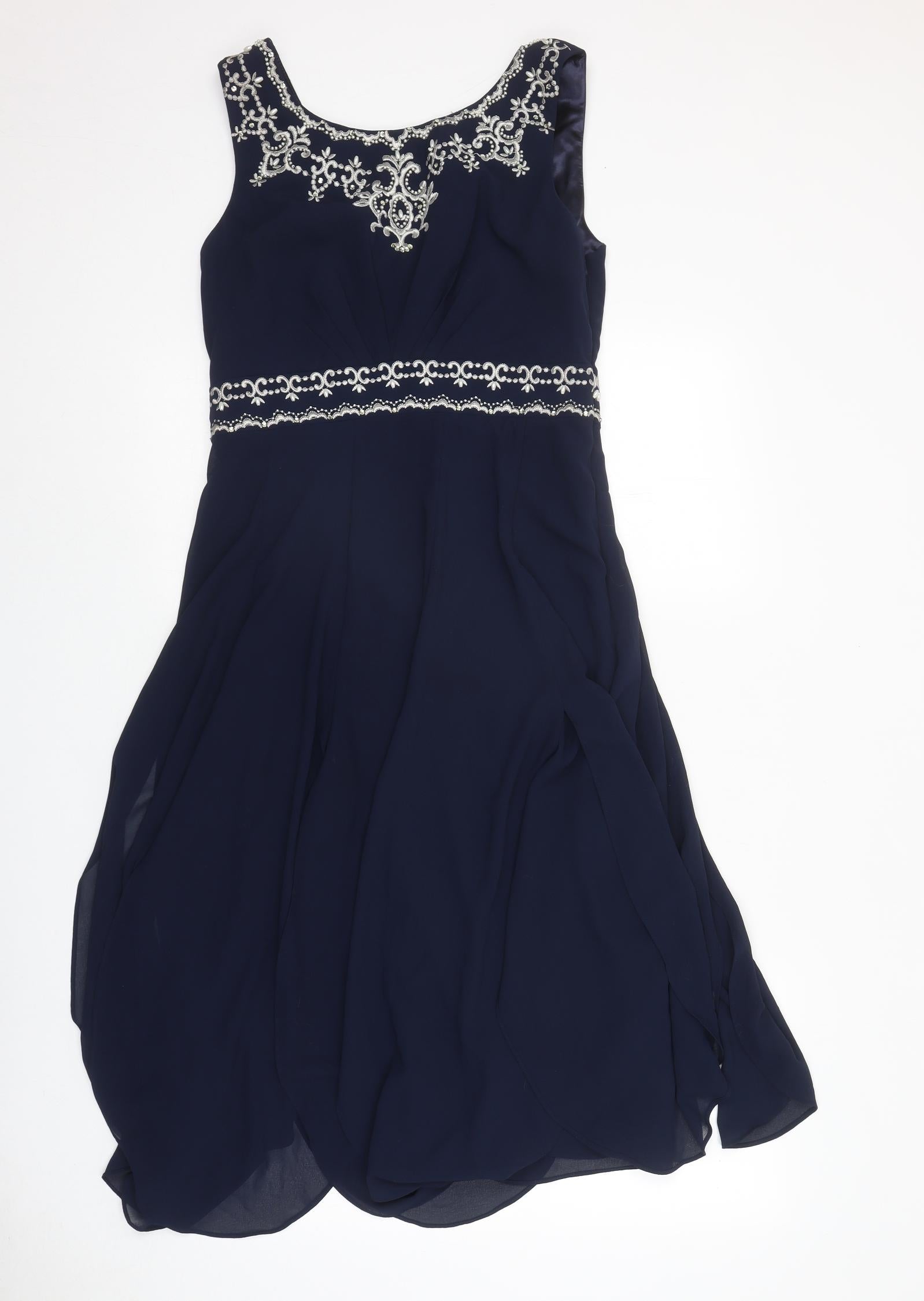Womens Blue Geometric Polyester Ball Gown Size 10 Round Neck Zip