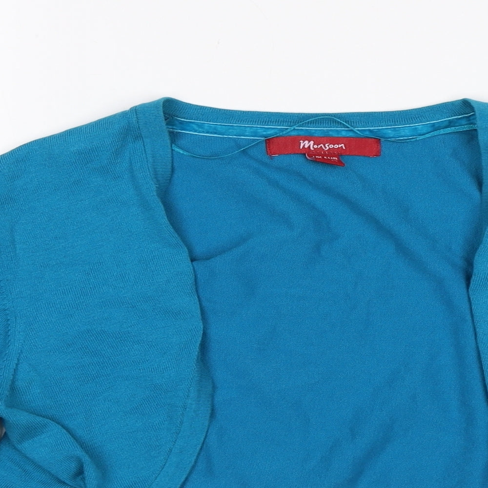 Mantaray Women Blue Size 14 Open Knit Long Sleeve Cardigan