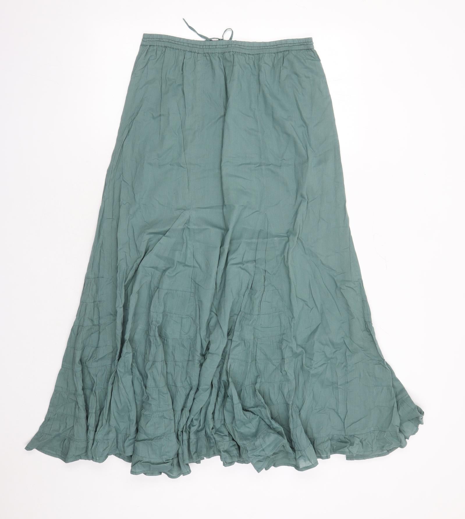 Womens Green Cotton Peasant Skirt Size 12 Drawstring - Elasticated Waist