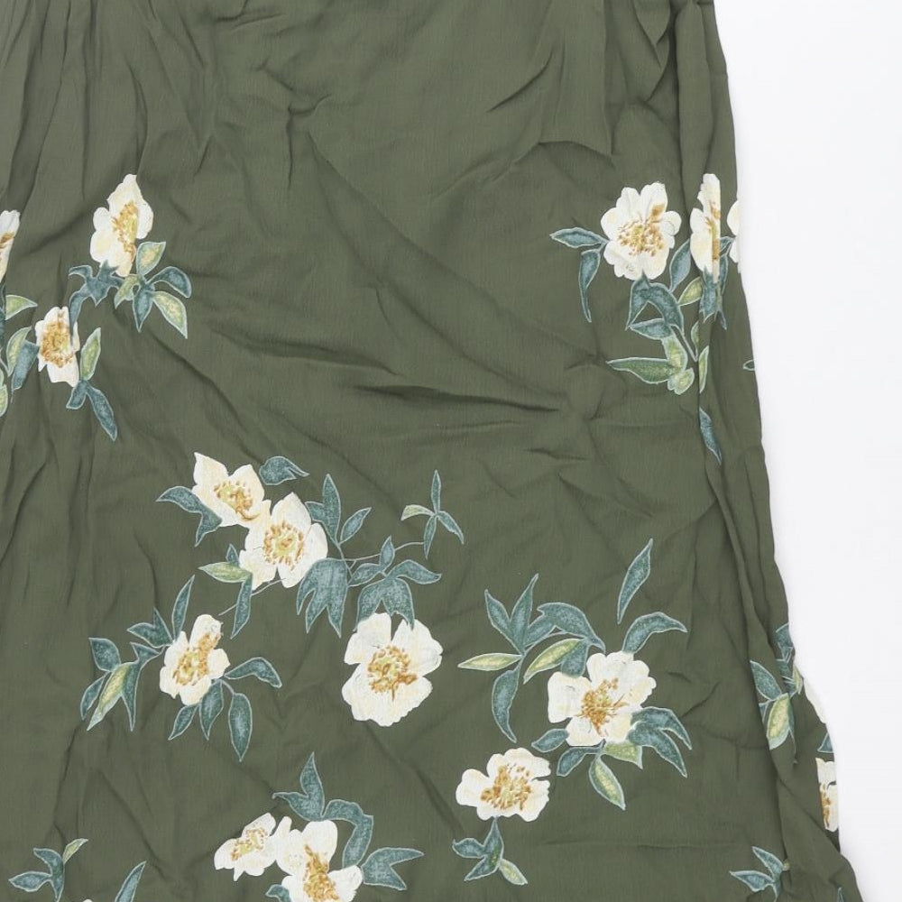 Womens Green Floral Viscose A-Line Skirt Size 18 Zip