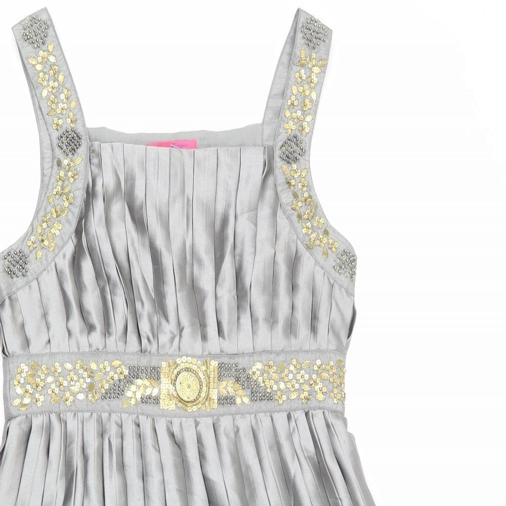 Womens Grey Polyester A-Line Size 10 Square Neck Zip