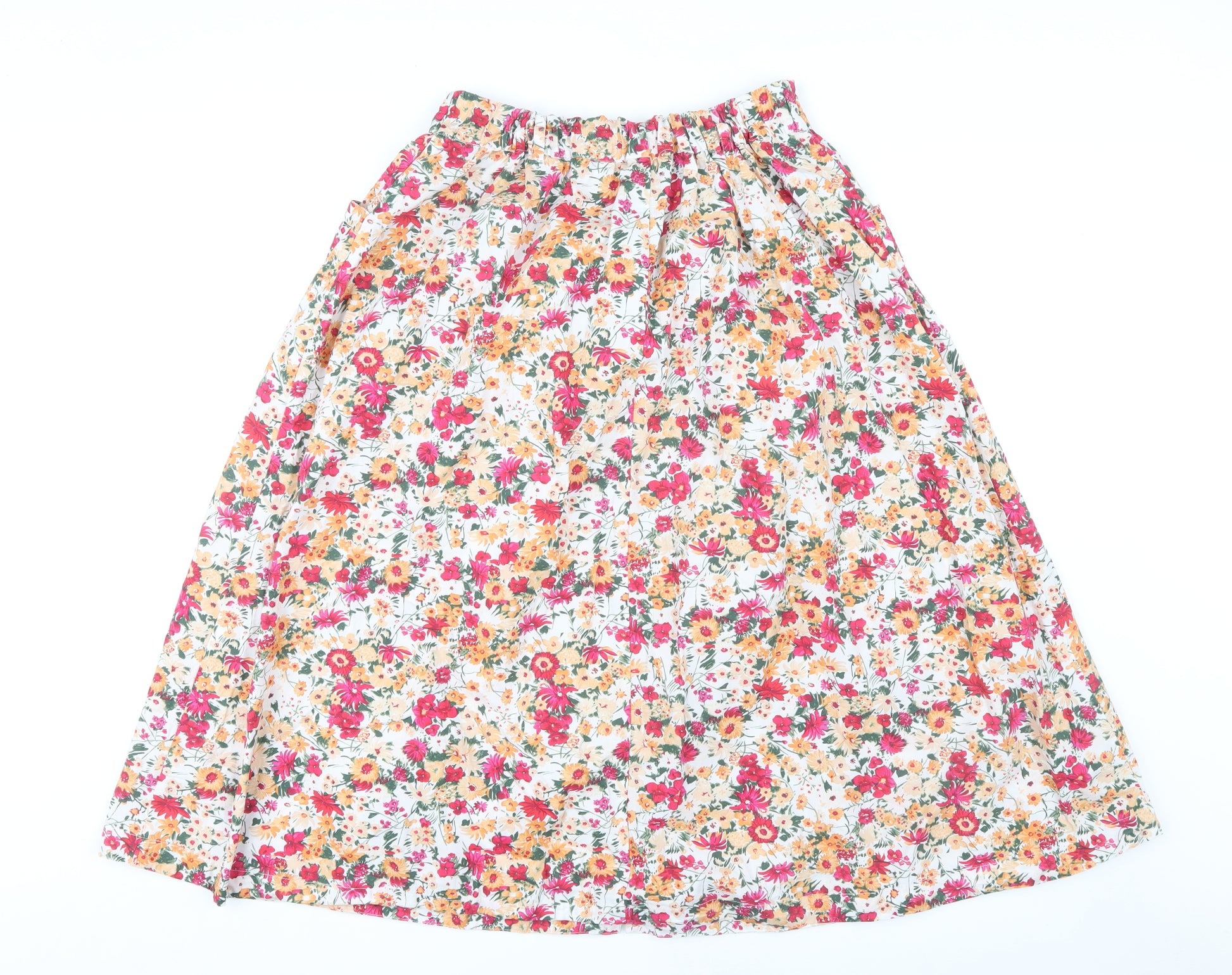 Embrace the spring and summer vibes with this delightful Monsoon Women's Floral Midi Skirt. Available in size M, this enchanting skirt features a multicoloured palette that brings a vibrant flair to your wardrobe. Crafted from 100% organic cotton, it offers a soft and comfortable fit, making it ideal for all-day wear. The elastic waist design ensures ease of wear and flexibility, while the floral pattern adds a touch of feminine elegance. Perfect for casual occasions, this skirt pairs splendidly with a simple blouse or your favourite top for a breezy, stylish look. Whether you're heading to a garden party or a casual brunch, this skirt is sure to become a cherished piece in your collection.
