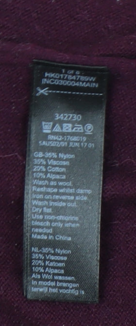 Elevate your everyday wardrobe with this elegant Monsoon women’s jumper in a rich purple hue. Crafted with a unique blend of nylon, viscose, cotton and alpaca, this jumper is both soft to the touch and cosy, making it a versatile choice for cooler weather. The composition offers comfort and durability, while the addition of alpaca wool gives it a luxurious finish that feels warm without being too heavy. Designed with a flattering crew neckline and three-quarter sleeves, this pullover style is perfect for layering or wearing on its own. The slim but comfortable fit creates a polished silhouette that works beautifully with tailored trousers for work or jeans for a relaxed weekend look. Its understated embellishment of delicate beaded accents on the front adds just the right amount of sparkle, making it suitable for both day and evening wear. The tidy, tight-knit fabric construction ensures this jumper maintains a sleek appearance, while the simple design keeps it timeless and versatile. Ideal for casual occasions, this jumper slots seamlessly into your wardrobe, serving as a staple piece that can be dressed up or down. Monsoon’s reputation for quality shines through in the craftsmanship, and the rich purple shade makes a stylish alternative to neutrals such as black or grey, offering a refreshing yet versatile pop of colour. This jumper works perfectly for autumn and winter, keeping you comfortable and on-trend when the temperatures drop. With its condition rated as very good, there are no major flaws present, only some light lint visible, which does not detract from the overall wearability of the garment. A chic and reliable staple, this Monsoon jumper will make a wonderful addition to any collection, pairing well with skirts, trousers or layered under blazers. Whether you’re heading to brunch, enjoying a casual outing, or adding some sparkle to your everyday wardrobe, this piece delivers both comfort and style with ease.