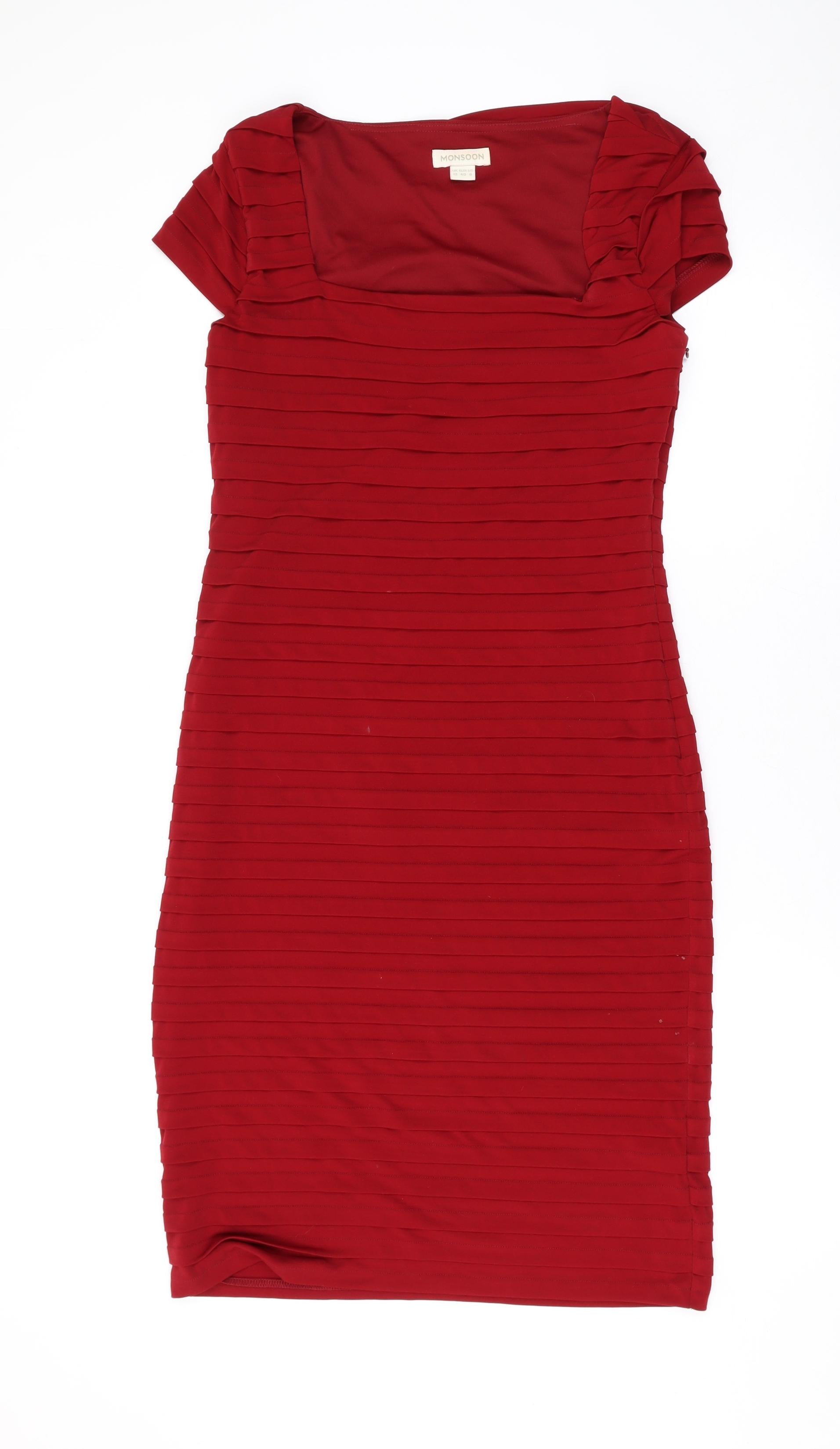 Womens Red Polyester Bodycon Size 12 Square Neck Zip