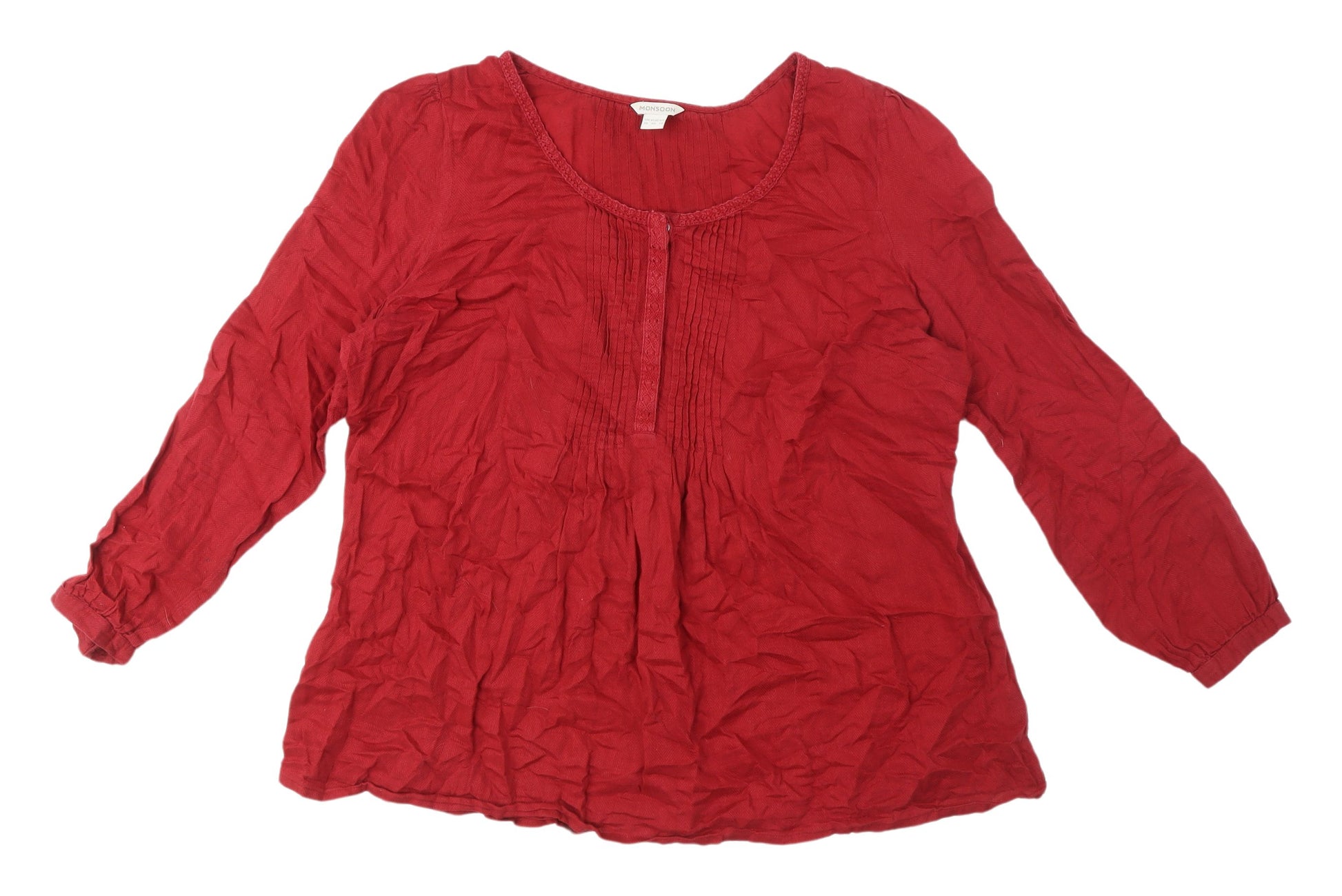 Discover the allure of the Monsoon Women's Red Tunic Blouse, perfect for adding a vibrant pop of colour to your wardrobe. Crafted from soft, breathable cotton, this blouse offers a lightweight and comfortable fit that’s ideal for casual outings. The solid red hue infuses a bold statement, making it an eye-catching addition to any ensemble. The 3/4 sleeves and classic round neckline provide a timeless silhouette that flatters and adapts to various styles. With its relaxed tunic style, this blouse is designed to flow elegantly, offering both comfort and style. Button closures add a touch of detail, enhancing the overall aesthetic appeal. Perfect for both spring and autumn, this versatile piece can easily be dressed up or down. Pair it effortlessly with jeans for a casual day out or style with tailored trousers for a smart-casual look at work. Embrace the blend of tradition and trend with Monsoon’s commitment to quality and classic design. Don’t miss the chance to make this stunning blouse a staple in your collection.
