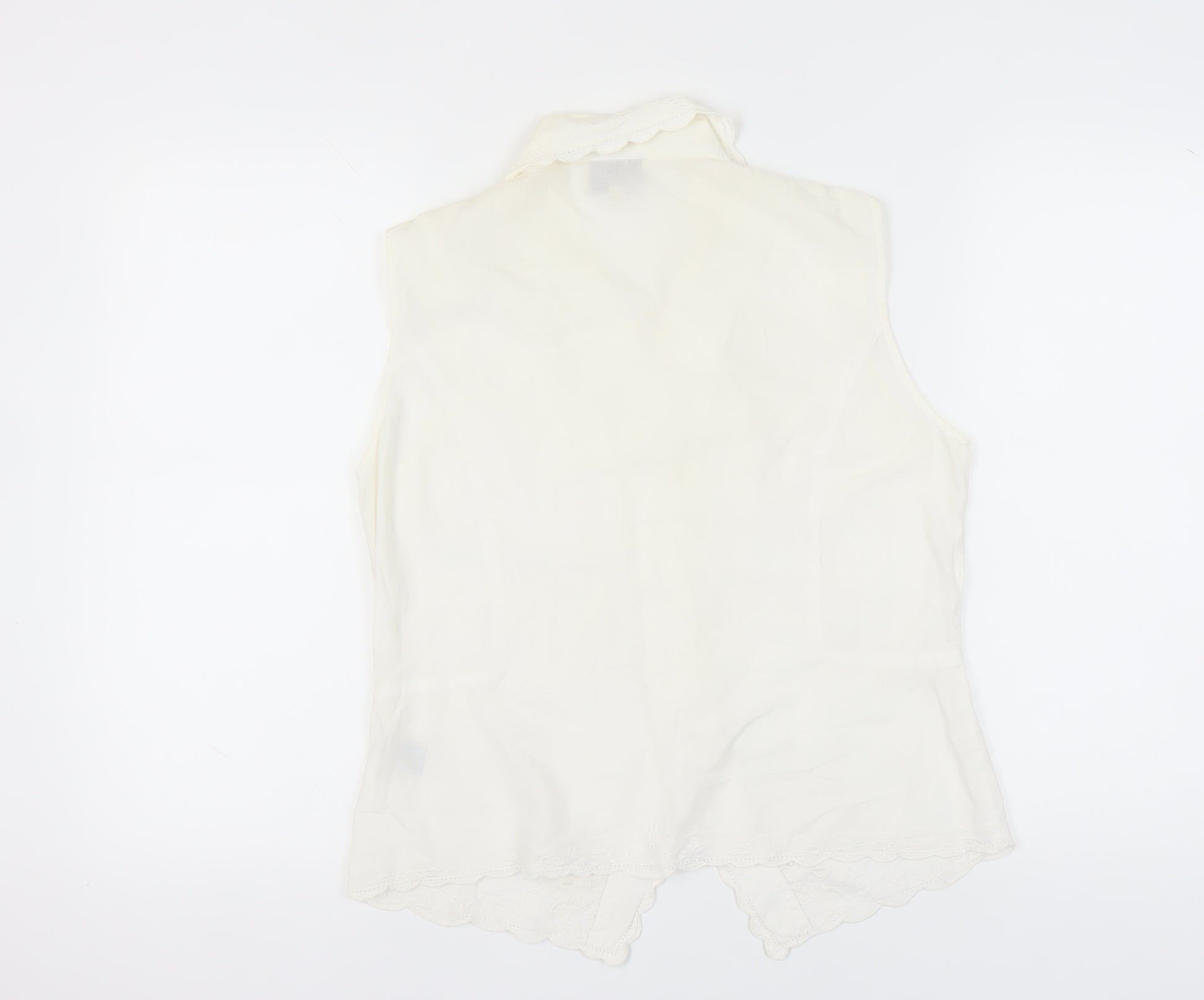 Elevate your wardrobe with this classic white blouse from Monsoon, designed for a touch of elegance and versatility. Crafted from 100% cotton, this sleeveless blouse offers a comfortable and breathable fit, perfect for everyday wear or casual outings. The piece features delicate embroidered accents, adding a subtle sophistication to its solid white fabric. Its collared neckline exudes a timeless appeal, making it a staple addition to any woman's clothing collection. With a regular size fit of 16 and a convenient button closure, it ensures both style and functionality. Easy to maintain with its machine washable fabric, this blouse makes an effortless choice for those who appreciate simplicity and beauty in fashion. Ideal for casual occasions, pair it with jeans or a skirt to create a chic and polished look, ensuring you stand out with understated elegance. Discover comfort and style with this classic Monsoon blouse, offering a versatile addition to your fashion ensemble.