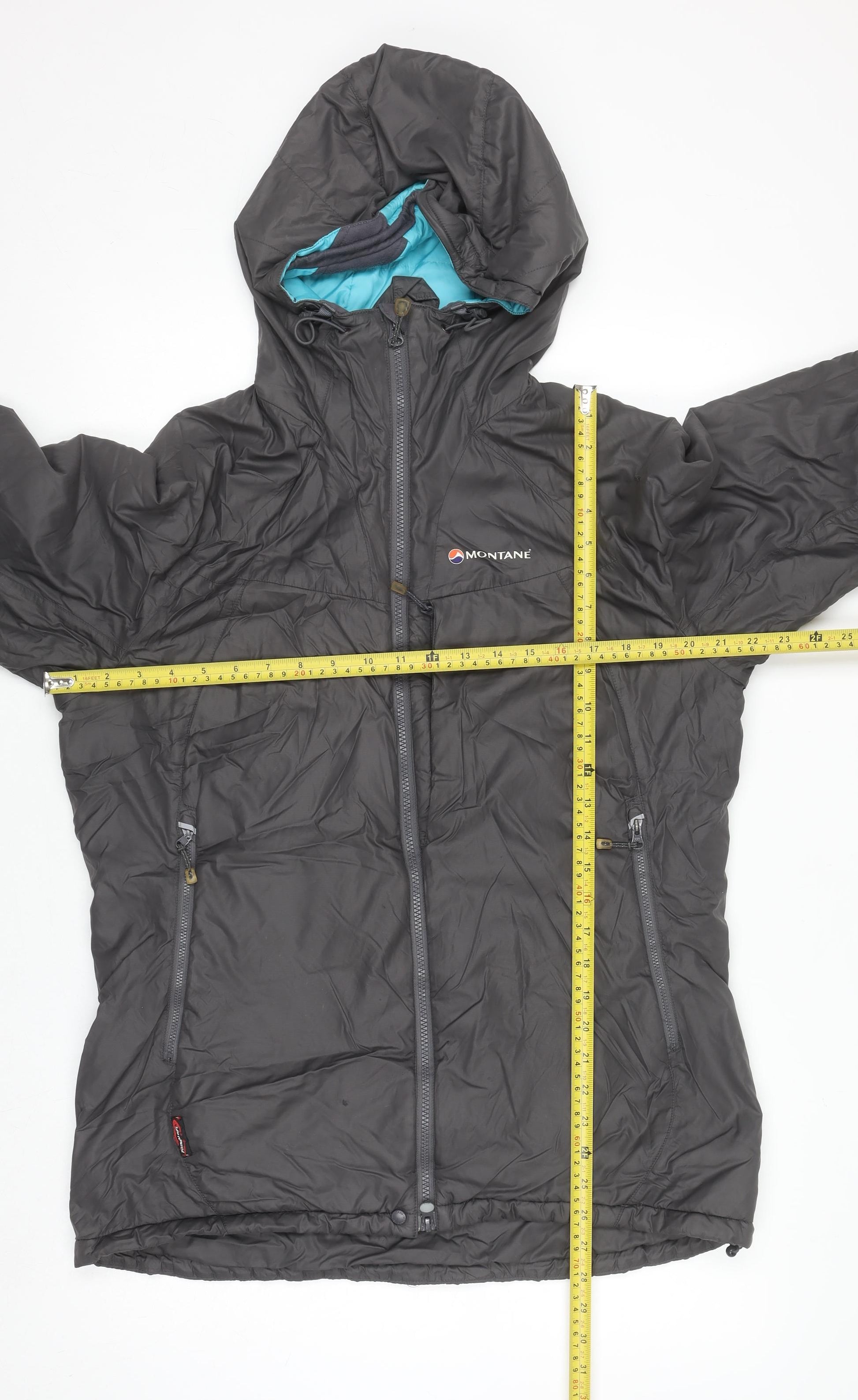 Stay warm and comfortable during outdoor adventures with this Montane women’s hooded puffer jacket in size 16. Designed with durability and performance in mind, this mid-length grey jacket is crafted from 100% nylon, making it lightweight, windproof, and water resistant—ideal for cool and windy conditions. The jacket features a practical full-zip front fastening for easy wear, while multiple zip pockets provide secure storage for everyday essentials. Its softshell feel and synthetic insulation keep you cosily warm without adding bulk, and the adjustable hood offers extra protection against the elements. The turquoise blue lining in polyester adds a stylish contrast to the outer shell, ensuring both form and function. This jacket’s versatile design makes it perfect for casual wear, travel, outdoor pursuits, or workwear that requires reliable thermal comfort. With its easy-care, machine washable material and dependable Montane construction, it delivers long-lasting quality. The subtle Montane logo accent and modern technical style give it a polished yet adventurous look, suitable for hiking trails, city walks, or everyday errands during autumn and winter months. In excellent pre-owned condition with only minimal signs of use, it remains fresh, clean and ready for new adventures. A great choice for those seeking premium outdoor performance gear in a flattering, regular fit. This Montane puffer jacket brings together weather protection, lightweight insulation, and timeless outdoor style to keep you confidently warm season after season.