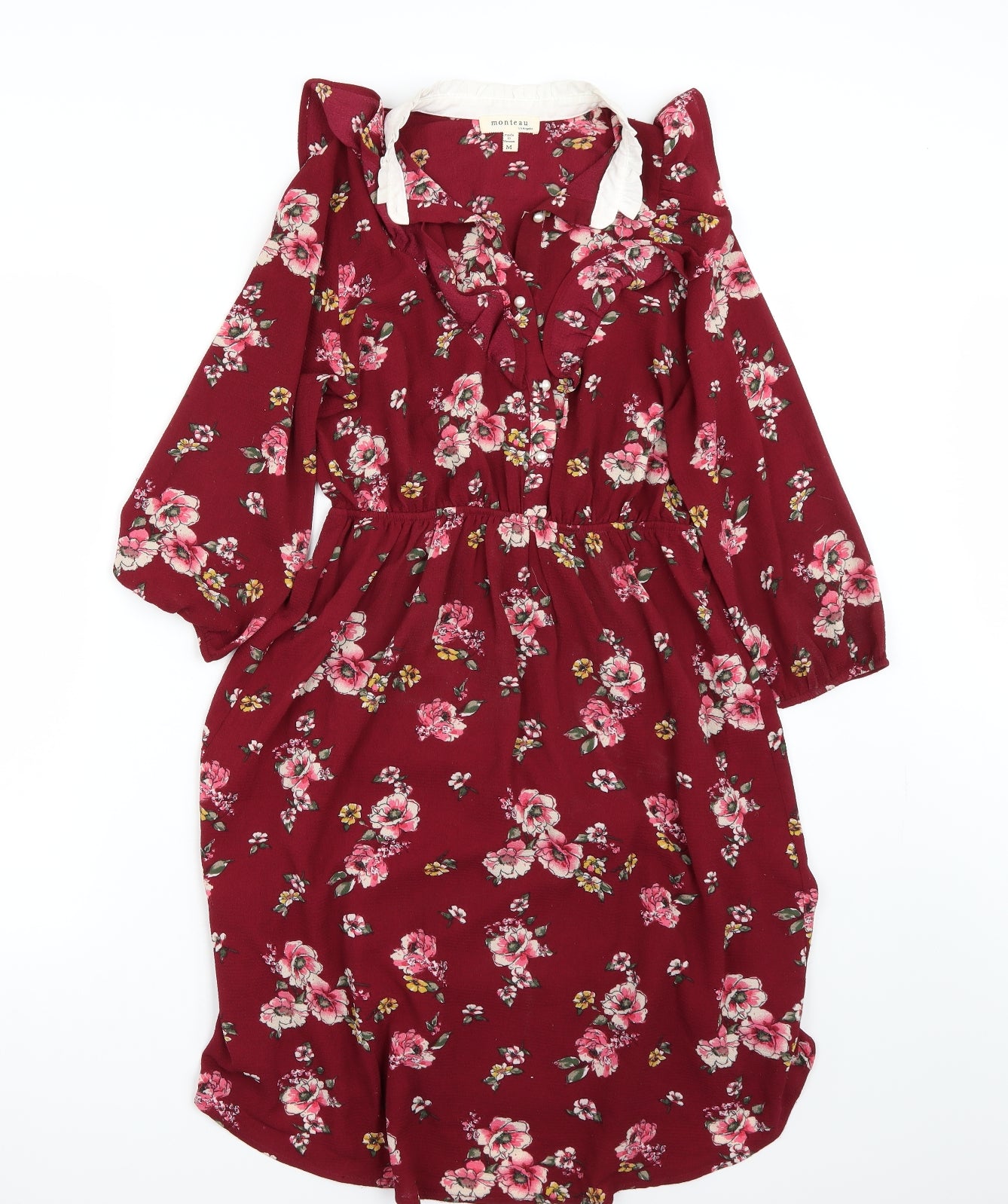 Preworn Womens Red Floral Polyester Blend Fit & Flare Size M V-Neck Drawstring