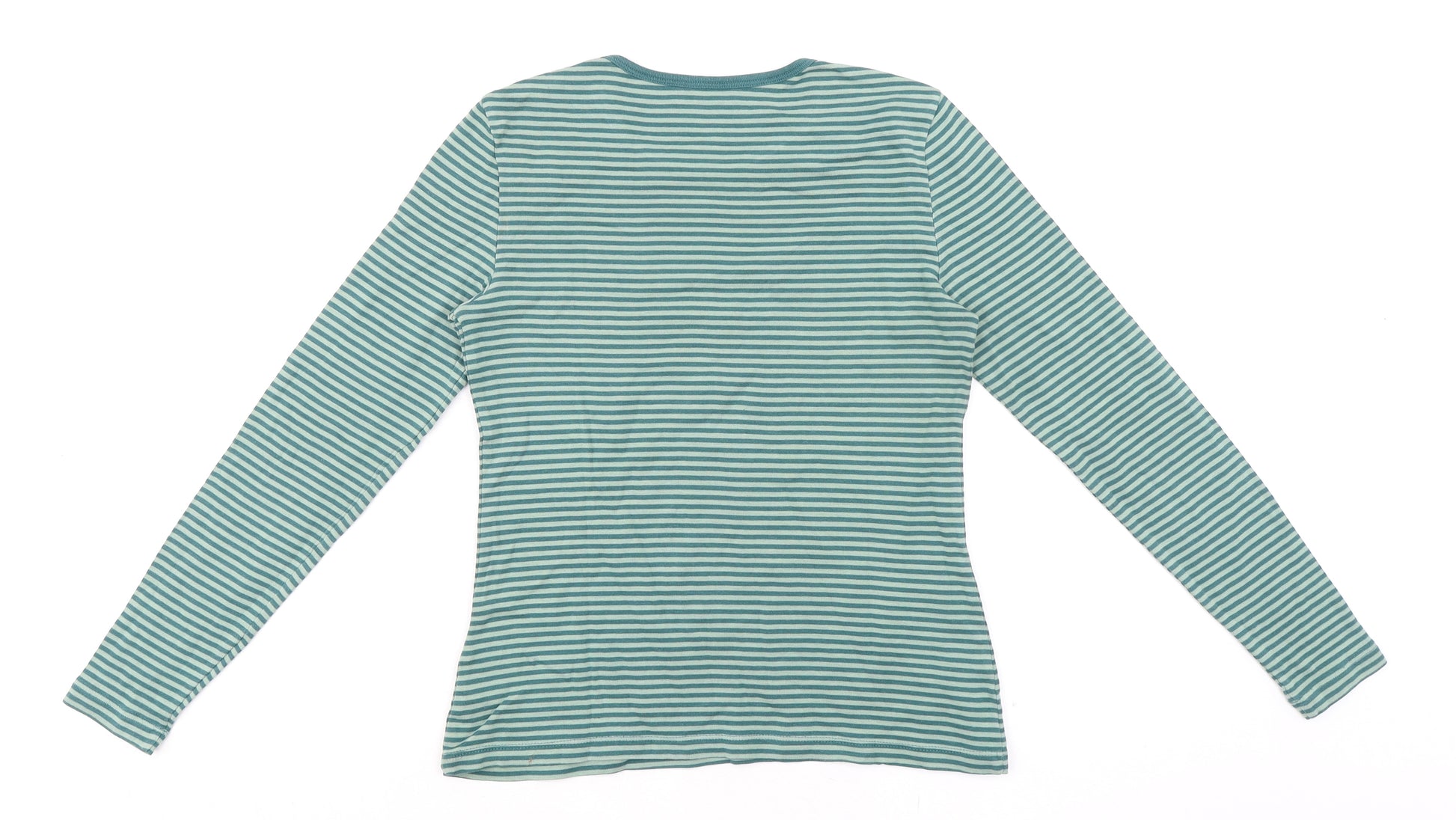 Womens Green Striped 100% Cotton Basic T-Shirt Size S Round Neck