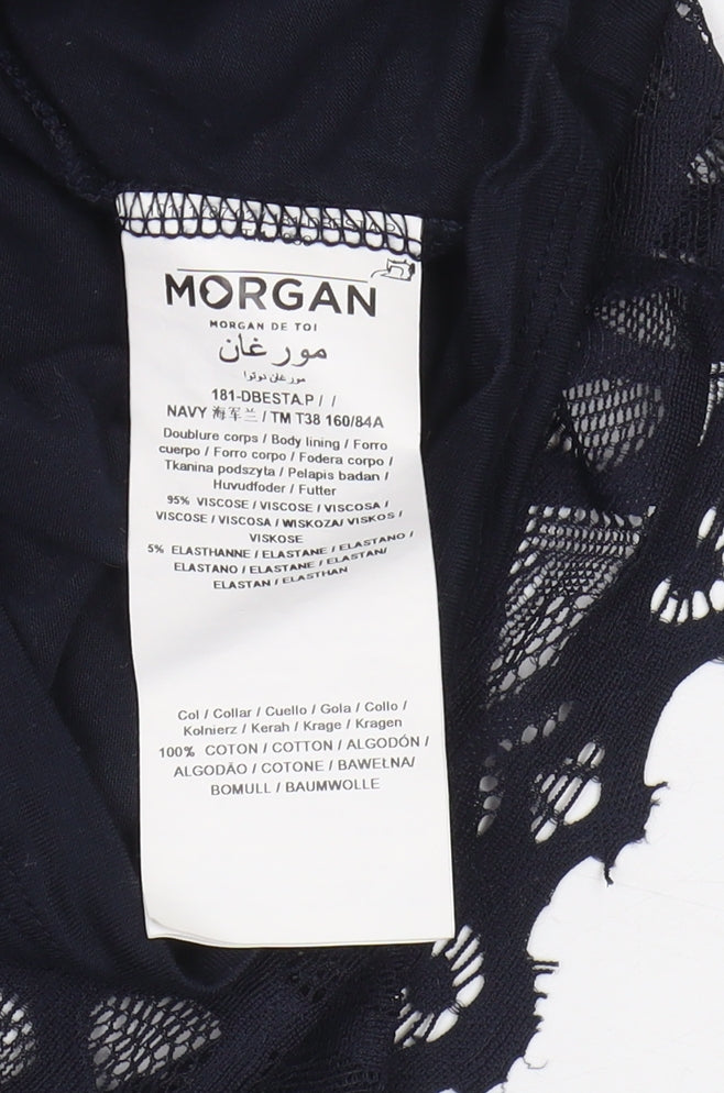 Elevate your wardrobe with this elegant Morgan Women's Black Collared Lace Blouse. Crafted from a luxurious blend of viscose and elastane with a cotton collar, this blouse is perfect for adding a touch of sophistication to your look. The solid black colour pairs seamlessly with any ensemble, while the short lace sleeves and collared neckline provide a chic, feminine touch. Ideal for casual and smart casual occasions, this blouse promises comfort without compromising on style. The zip closure ensures a snug fit, and the exquisite lace fabric adds a timeless elegance to this versatile piece, making it a must-have for any fashion-conscious woman.